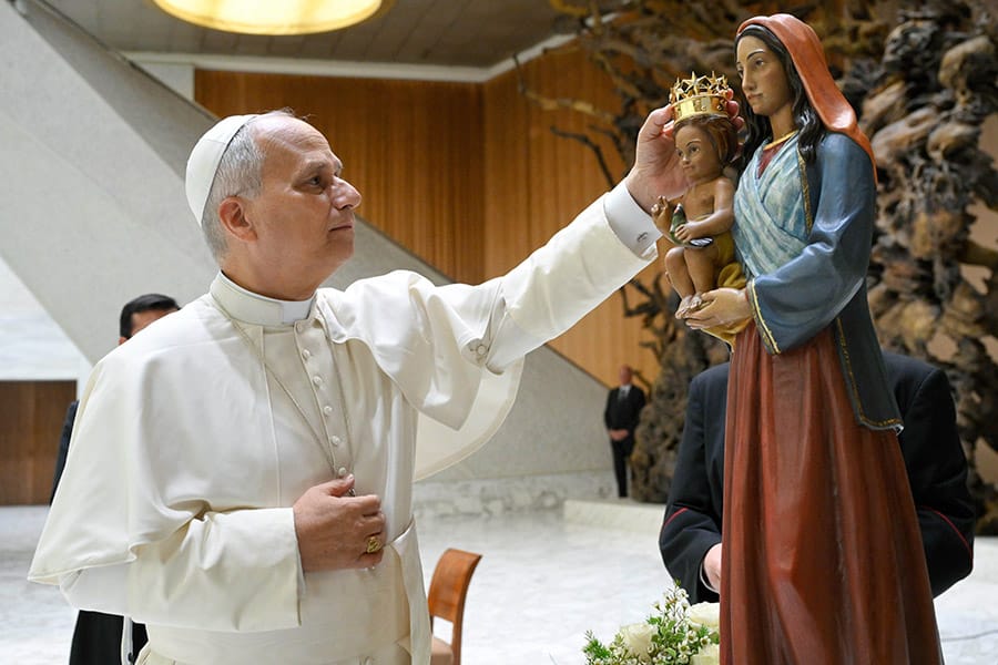 Pope thanks Roma, Sinti, Travelers for witness of faith amid hardships October 21, 2025By Cindy Wooden Catholic News Service Filed Under: Ecumenism and Interfaith Relations, News, Vatican, World News VATICAN CITY (CNS) — Often literally pushed to the margins of cities and even parish life, Catholic members of the Roma, Sinti and Traveling communities are models of steadfast faith in the face of adversity, Pope Leo XIV said. Joining thousands of Roma, Sinti and Travelers in the Vatican audience hall Oct. 18 as part of their Jubilee celebration, Pope Leo thanked them for “your strong faith, your unshakeable hope in God alone (and) your solid trust that does not yield to the hardships of a life often lived on the margins of society.” Pope Leo XIV places a crown on a statue of Mary and the Child Jesus during a meeting with participants in the Jubilee of the Roma, Sinti and Traveling Peoples in the Paul VI Audience Hall at the Vatican Oct. 18, 2025. (CNS photo/Vatican Media) The meeting with the pope was preceded by song, dance and accounts of the faith of the Roma, Sinti and Travelers despite oppression and persecution, particularly the Nazi’s Holocaust of an estimated 250,000-500,000 members of their communities. During the audience, Pope Leo crowned a statue of Our Lady, Queen of the Roma, Sinti and Travelers, and of the Child Jesus she was holding. “So-called ‘advanced’ societies have consistently rejected you,” the pope said, “always placing you on the margins: on the margins of cities, on the margins of rights, on the margins of education and culture.” “The model of society that marginalized you and made you itinerant, without peace and without welcome –- first in seasonal caravans and then in camps on the outskirts of cities, where you sometimes still live without electricity and water -– is the one that has created the greatest social injustices globally in the last century: enormous economic inequalities between individuals and peoples, unprecedented financial crises, environmental disasters, wars,” he said. But the Roma, Sinti and Traveling communities, the pope said, have a gift to offer the rest of the church by being “living witnesses to the centrality of these three things: trusting only in God, not attaching yourselves to any worldly goods, and showing exemplary faith in works and words.” As members of the community know, he said, “living this way is not easy. It is learned by accepting God’s blessing and allowing it to work to change our hearts.” Pope Leo encouraged the communities to reach out and work with others to improve their lives and the lives of people in the places they live, “overcoming mutual distrust, making known the beauty of your culture, sharing your faith, your prayers and the bread that is the fruit of honest labor.” The pope also insisted the church should do more to promote education and vocational training for the communities’ young people, pastoral care for the family and the community, the inculturation of liturgy and catechesis and ecumenical and interreligious dialogue in the world of the Roma, Sinti and Travelers. Read More Vatican News Though Nicaea is a ruin, its Creed stands and unites Christians, pope says A little leaven can do great things, pope tells Turkey’s Catholics Catholic filmmaker investigates UFO mysteries at the Vatican Tennessee teen’s letter to Pope Leo brings a reply with gift of special rosary blessed by him Pope arrives in Turkey giving thanks, preaching peace Lebanese long for peace ahead of Pope Leo’s visit Copyright © 2025 Catholic News Service/U.S. Conference of Catholic Bishops Print