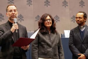 At the Vatican event, Father Fones also introduced the rest of the new executive team, which includes Bettina Raed, international vice director since September, and Jesuit Father Miguel Pedro Melo, who will join her as co-international vice director starting in July 2025.