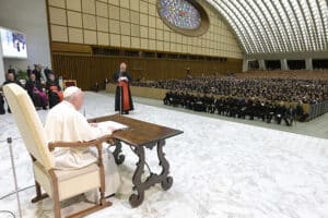 At the beginning of the audience, Pope Francis said the students had submitted 205 questions and that he would try to get to 10 of them, which he did. The questions ranged from advice about finding a spiritual director to a Ukrainian priest asking what the role of the church should be in a time of war.