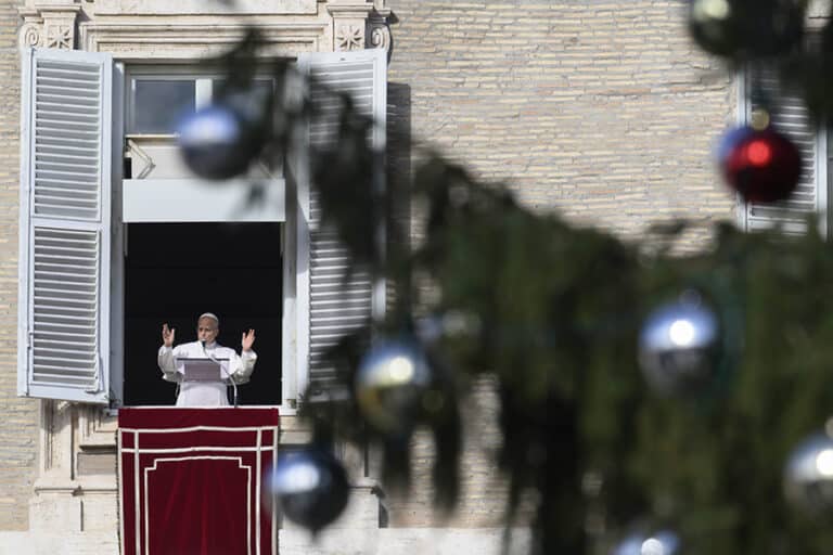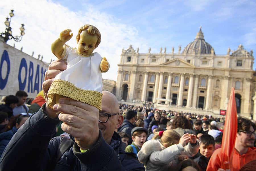 Pray for peace in front of the Nativity scene, pope asks children December 22, 2025By Cindy Wooden Catholic News Service Filed Under: Christmas, Feature, News, Vatican, World News ATICAN CITY (CNS) — Pope Leo XIV asked children to pray in front of their Nativity scenes this Christmas and, especially, to pray “that all the world’s children may live in peace.” Clutching their creche figurines of the baby Jesus, thousands of children gathered in St. Peter’s Square Dec. 21 to have Pope Leo bless the little statues after the midday recitation of the Angelus prayer. A man holds up a Nativity scene figurine of the Baby Jesus to be blessed by Pope Leo XIV in St. Peter’s Square at the Vatican Dec. 21, 2025. (CNS photo/Vatican Media) “Dear children, as you stand before your Nativity scenes, please pray to Jesus for the pope’s intentions,” he told them. “In particular, let us pray together that all the world’s children may live in peace.” In his main Angelus address, Pope Leo focused on the day’s Gospel reading about St. Joseph and how an angel told him in a dream that Mary was pregnant and that he should not be afraid to take her as his wife. The Gospel of St. Matthew portrays St. Joseph as a man of “piety and charity, mercy and abandonment” to God’s will, the pope said. As Christmas draws near, he said, all Christians should cultivate the same values because they are “important attitudes that educate the heart to encounter Christ and our brothers and sisters.” “They can also help us to be, for one another, a welcoming manger, a hospitable home, a sign of God’s presence,” Pope Leo said. “In this time of grace, let us not waste the opportunity to practice them: forgiving, encouraging, giving a little hope to those with whom we live and those we meet; and renewing in prayer our filial abandonment to the Lord and his providence, entrusting everything to him with confidence.” The day before, Pope Leo had held the last of his special Jubilee general audiences in St. Peter’s Square. The Holy Year ends Jan. 6. “The Jubilee is coming to an end,” the pope told visitors and pilgrims. “However, the hope that this year has given us does not finish: we will continue to be pilgrims of hope!” “To hope is to see this world become God’s world, the world in which God, human beings and all creatures walk together again,” Pope Leo said. Read More Vatican News A new rider at the helm: Bishop Richard Moth named archbishop of Westminster Pope advances causes of Argentine businessman, Spanish martyrs Pope urges people to protect, cultivate even smallest signs of peace, hope Pope accepts resignation of Cardinal Dolan; names Bishop Hicks of Joliet, Ill., as successor Rather than chasing productivity, turn to God to resolve restlessness, pope says Pope, Israeli president speak by phone about Sydney attack, peace in Gaza Copyright © 2025 Catholic News Service/U.S. Conference of Catholic Bishops Print