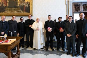 And with their brother priests, the pope urged the group to “share everything one has,” to ask for correction when they are mistaken and to frankly correct others when they err, inspiring a life of deep piety and frequent confession.