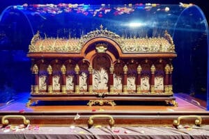 Housed in an ornate 300-pound reliquary, the objects have journeyed from St. Thérèse’s native France as part of a pilgrimage marking both the 100th anniversary of her canonization and the Catholic Church’s Jubilee Year. The tour began on her feast day, Oct. 1, in Michigan and will include multiple stops across the United States before coming to Maryland.