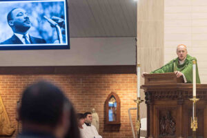 Father Lee also pointed out that the Mass was being offered at the start of a week that included the federal holiday commemorating the birthday of Rev. King (Jan. 19 this year), the Day of Prayer for the Legal Protection of Unborn Children (Jan. 22) and the annual March for Life (Jan. 23). He said the Mass would be an opportunity to pray for “the protection of human dignity, solidarity and the healing of our world.”