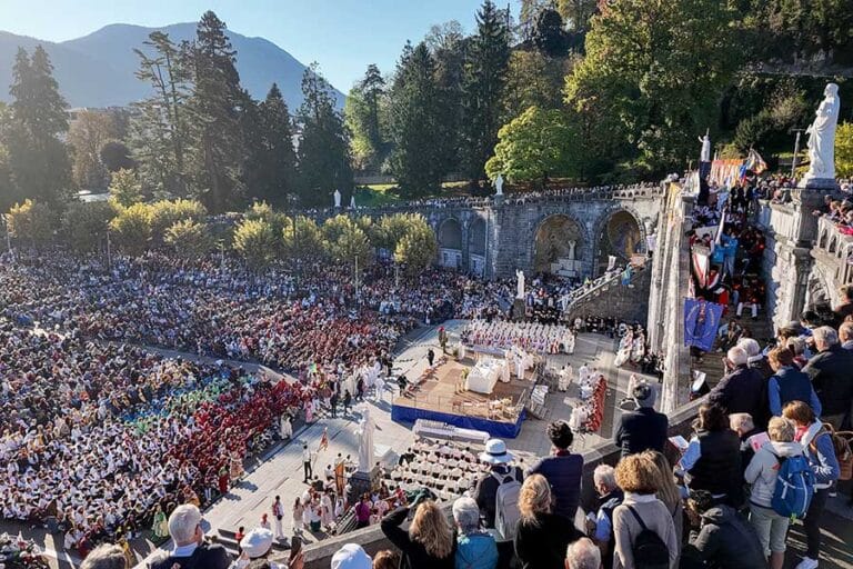 Rosary Pilgrimage to Lourdes, with record turnout, highlights brotherhood, martyrs of Algeria October 8, 2025By Caroline de Sury OSV News Filed Under: Marian Devotion, News, World News PARIS (OSV News) — Lourdes saw a record turnout for the annual Rosary Pilgrimage, with 17,000 pilgrims from Oct. 2–4 — the highest number since the Dominican-led event began in 1908. Among them were 200 Dominicans, 3,000 young people and children, and 2,700 hospital employees, who cared for nearly a thousand sick and disabled people. In addition to the traditional processions and ceremonies in Lourdes, the Rosary Pilgrimage offers numerous conferences and testimonials. Pilgrim prays in Lourdes, France, as part of the Oct. 2-4, 2025, “Rosary Pilgrimage,” organized by the Dominican order since 1908. The Marian shrine of Lourdes welcomed a record number of participants this year — 17,000 pilgrims were present, 2,000 more than in 2024. (OSV News photo/courtesy Lourdes shrine) The main guest preacher was French Dominican Cardinal Jean-Paul Vesco of Algiers, who acquired Algerian nationality in 2023. Cardinal Vesco came to Lourdes with around 30 Algerian Muslims. “We had to overcome Himalayan difficulties to bring them here,” he said, explaining “the audacity of brotherhood” in his talk. He strongly emphasized the “discretion” that must surround the lives of Christians in Algeria, where Islam is the state religion. “It is a special, very complex life that we lead in Algeria as Christians,” he explained. “It is a discreet life, but one that is an integral part of the citizenship and life of this country.” Among Algerians who accompanied the cardinal was Khaled Boudaoui, who has prostate cancer. In his book, titled “Laps of Time,” published in France in April, he recounted his experience from the day doctors told him he had only four months to live in 2012. Since then, he has been training to run marathons. “Khaled is a very dear friend, and he often invited me to join him for a run,” Cardinal Vesco recounted. “He was very keen to come to Lourdes with me. Our Christian hope goes beyond human hopes. Mine is nourished by witnesses in whom I see it alive, as I see it in Khaled.” About 15 amateur actors were also in the group of Algerians. On Oct. 3, they performed a play in the sanctuary, where a special set had been built for them, representing the Cistercian monastery of Tibhirine, located in northern Algeria, in the Atlas Mountains. The actors brought to the stage the tragedy of the seven Trappist monks, kidnapped on the night of March 26-27, 1996. They had their throats slit — their decapitated heads were found at the end of May in 1996. It is believed they were victims of the Armed Islamic Group, who were fighting the Algerian government, but there is no certainty who is really responsible for the murder at a time of a gruesome civil war that killed some 200,000 people. “This is the first time that Algerians have written and staged this subject,” Cardinal Vesco noted, referring to the fact that this tragedy remains an extremely sensitive subject in Algeria, as the role of the authorities at the time has not been fully clarified. This emotionally charged play is titled “A Friend of the Last Minute,” in reference to the famous “spiritual testament” of Father Christian de Chergé, the superior of the monks of Tibhirine. Sensing the danger of being killed by an Islamist extremist, he had written a letter to his younger brother, telling him that he was “giving his life to God and to this country.” In this text, he addressed his future attacker, calling him “the friend of the last minute, who will not have known what you were doing.” For Cardinal Vesco, Father de Chergé, who was beatified in 2018 along with the other monks, is a model of the “brotherhood” to which Christ invites Christians. In front of a very large audience, he recounted that the prior of Tibhirine had written this spiritual testament in December 1993, when he had received a visit on Christmas Eve from the leader of an Islamist commando unit who had come looking for a doctor. The commando unit had just murdered 12 Croatian Christians who were working on a nearby construction site. “Father de Chergé spoke to him about the monastery as a house of peace into which he could not enter with weapons,” Cardinal Vesco recounted. “He told him about the celebration of the birth of the Prince of Peace, and the armed leader ended up apologizing for disturbing.” “He had succeeded in creating a relationship of brotherhood despite the tension and danger of this exchange,” Cardinal Vesco commented. “This is an extraordinary testimony for us. If we are brothers only to our Christian brothers and sisters, we are not Christians. Christian brotherhood must strive for universal brotherhood, regardless of any affiliation,” he said. “This transcendence is due to the person of Christ himself, who made us brothers to all our brothers, without setting any limits.” Read More Marian Devotion Question Corner: Is it a sin if someone calls Mary ‘co-redemptrix?’ Vatican document affirming scriptural understanding of Mary and her role prompts reflection Thousands of Catholics gather at shrine of Fatima Rani in Bangladesh Mary, mother of Jesus and all believers, is not co-redeemer, Vatican says Tehran metro station dedicated to Mary a call to follow her on path of peace, cardinal says Real faith changes the way Christians live, treat each other, pope says Copyright © 2025 OSV News Print