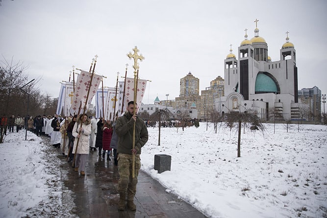 Russia’s war on Ukraine means ‘No Priests Left,’ documentary shows February 24, 2026By Gina Christian OSV News Filed Under: Movie & Television Reviews, War in Ukraine Four years ago, Ukrainian Greek Catholic priest Father Oleksandr Bohomaz was serving at a parish in the southern Ukrainian city of Melitopol, along with his pastor, Father Petro Krenitskyi. Then Russian forces launched a full-scale invasion of Ukraine on Feb. 24, 2022, continuing attacks initiated in 2014 — which up to that point alone had killed more than 14,000. This is an image from “No Priests Left,” a short-film documentary series produced by “A Faith Under Siege” that documents the persecution of Catholics in Russian-occupied Ukraine. (OSV News photo/courtesy A Faith Under Siege) A week into the 2022 invasion, “repression began,” said Father Bohomaz, speaking in the recently released short documentary “No Priests Left.” “Priests and pastors were arrested. They were interrogated. They were beaten. They were held in … torture chambers,” said Father Bohomaz, who was forcibly deported from Russian-occupied Melitopol in December 2022. He added, “People come out of Russian captivity looking like they came out of Auschwitz, from a death camp. And actually many don’t make it out, because they do die there.” In a June 2024 with the media outlet Ukrinform, Major Archbishop Sviatoslav Shevchuk, father and head of the Ukrainian Greek Catholic Church, said that as a result of Russia’s war on Ukraine, “There is not a single Catholic priest in the occupied territories today — either Greek Catholic or Roman Catholic.” That grim reality led to the naming of the documentary, part of the film project “A Faith Under Siege.” The documentary initiative has resulted in several works examining Russia’s persecution of faith communities in occupied regions of Ukraine. Spearheading the project are executive producers Colby Barrett, an entrepreneur and former U.S. Marine; Steven E. Moore, a former chief of staff in the U.S. House of Representatives and founder of the Ukraine Freedom Project, a nongovernmental organization bringing humanitarian aid to the front lines of Russia’s war in Ukraine; and Anna Shvetsova, a Ukrainian native and an expert on U.S. policy in that nation. Appearing in the film along with Father Bohomaz and Father Krenitskyi are Metropolitan Borys A. Gudziak of the Archeparchy of Philadelphia, head of external relations for the global Ukrainian Greek Catholic Church; and Jesuit Father Andriy Zelinsky, deputy head of the Department of Military Chaplaincy for the UGCC. Both Archbishop Gudziak and Father Zelinsky noted the long historical precedent for Russia’s persecution of Ukrainian Christians not affiliated with the Russian Orthodox Church from Russia’s czarist era and into communism. Faithful walk in procession toward the Dnipro River for the blessing of water Jan. 6, 2024, after Major Archbishop Sviatoslav Shevchuk, head of the Ukrainian Greek Catholic Church, celebrated a Divine Liturgy at the Patriarchal Cathedral of the Resurrection of Christ in Kyiv amid ongoing Russian aggression in Ukraine. (OSV News photo/courtesy Ukrainian Greek Catholic Church) That repression — which has spanned “the 18th, 19th, 20th and now 21st centuries,” Archbishop Gudziak noted — included the 1946 liquidation of the UGCC by Soviet authorities, driving the Church underground until 1989, ahead of the fall of the Soviet Union. Russia’s targeting of these Christians — as well as Jewish and Muslim communities — in Ukraine has become a salient feature of its war, which has been assessed as a genocide in two joint reports from the New Lines Institute and the Raoul Wallenberg Center for Human Rights. The strategy is part of Russia’s “weaponized” Orthodox Christianity, Moore — who has testified before the U.S. Helsinki Commission in Washington on the issue — told OSV News. In March 2024, the Russian Orthodox Church declared Russia’s war on Ukraine a “holy war,” with Russia “protecting the world from the onslaught of globalism and the victory of the West that has fallen into Satanism.” Patriarch Kirill, the church’s head, told believers in a September 2022 sermon that Russian military personnel killed in Ukraine will have “all sins” washed away by their deaths. “It’s the same way that the Islamic extremists have tried to create martyrs with religion,” Moore explained to OSV News. “That’s what Patriarch Kirill is doing. Catholics, Baptists, Presbyterians, Pentecostals — these are all people that we’ve met that have been tortured or lost loved ones to the Russians.” Moore said that “Kirill’s followers and Russian Orthodox soldiers have taken him (Kirill) seriously when he says that he’s declared a holy war. “They have killed by some counts as many as 80 pastors and priests,” Moore added. “And they’ve shut down every church in occupied Ukraine that is not controlled by the Kremlin.” Since Russia’s full-scale invasion in 2022, some 700 churches and religious structures have been damaged or destroyed. Catholic churches and properties have been seized and rededicated for the Russian Orthodox Church, described by UGCC leadership as a sacrilege. Russian officials in the occupied Zaporizhzhia region formally “banned” the UGCC, the Knights of Columbus and Caritas. Torture — including beatings, mutilation and burning — and execution are commonplace and systematic in Russian captivity. Two UGCC Redemptorist priests, Father Ivan Levitsky and Father Bohdan Geleta, were abducted in late 2022 and subjected to torture while held in Russian custody for some 18 months prior to their Vatican-brokered release. Archbishop Gudziak told OSV News that “global, particularly American, awareness, prayer and action are crucial” to prevent further atrocities. He encouraged “all bishops and priests” to show “No Priests Left” to the fa