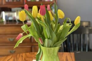 Spring can start anytime now. We had some lovely, warmer days, but now I’m back to wearing sweaters and my winter coat. On Saturday, we even had hail. I am so ready for spring! But we can be confident that spring is coming, just as we know that Easter is coming. The forsythia is still blooming even though it feels more like November than the end of March.