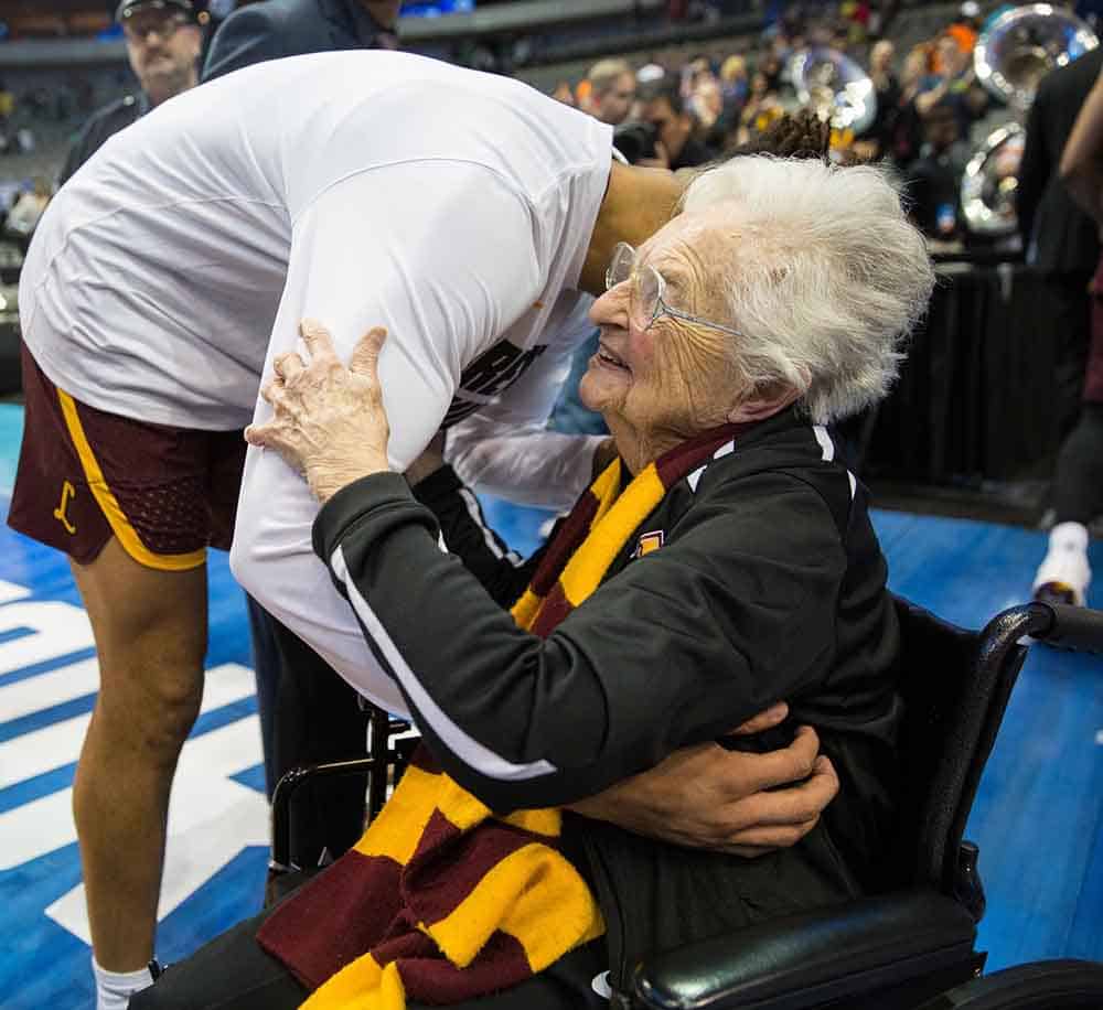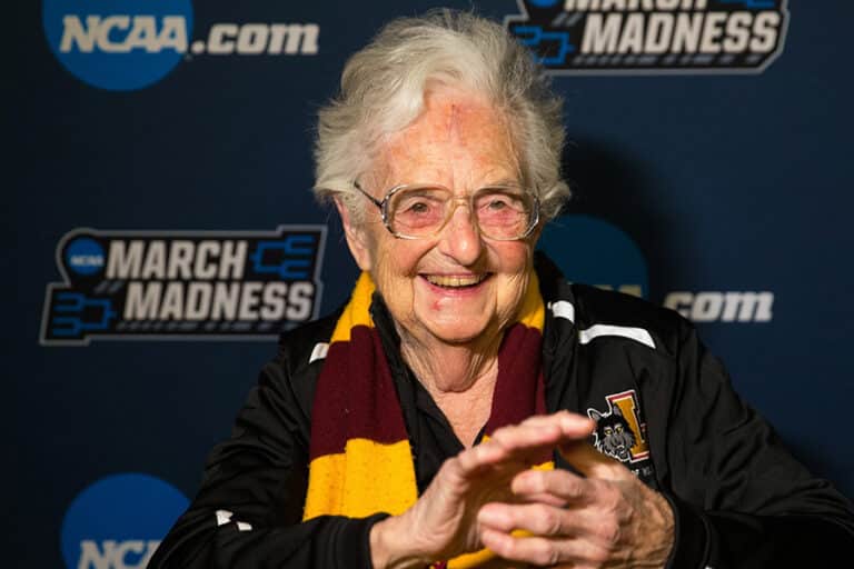 Sister Jean, beloved Loyola icon and chaplain of men’s basketball team, dies at 106 October 10, 2025By John Knebels OSV News Filed Under: Consecrated Life, News, Obituaries, Sports, World News She prayed with college basketball players before games, counseled them after losses, and reminded them that faith, not fame, was the real victory. Now, Sister Jean Dolores Schmidt, the spirited chaplain who became a national symbol of joy, devotion and perseverance, has completed her earthly journey. Sister Jean, a Sister of Charity of the Blessed Virgin Mary and longtime chaplain of the Loyola University Chicago men’s basketball team, died Oct. 9. She was 106. Sister Jean Dolores Schmidt, longtime chaplain of the Loyola University Chicago men’s basketball team and campus icon, embraces a player after the team’s win in the first round game of the NCAA Tournament against the University of Miami 2018 at the American Airlines Center in Dallas. Sister Jean died at age 106 Oct. 9, 2025. (OSV News photo/courtesy Loyola University Chicago) For many Americans, Sister Jean became a household name during Loyola’s stunning run to the 2018 NCAA Final Four, when she was 98 years old. Sitting courtside in her maroon-and-gold scarf, she offered pregame prayers, postgame analysis and the occasional strategic suggestion — earning the affection of fans, players, and coaches nationwide. Yet long before “March Madness” made her famous, she had already spent decades forming minds, shaping hearts and witnessing to Christ’s love through education and service. “While we feel grief and a sense of loss, there is great joy in her legacy,” said Loyola President Mark C. Reed. “Her presence was a profound blessing for our entire community, and her spirit abides in thousands of lives.” A month prior to her death, Loyola had confirmed Sister Jean had officially retired from on-campus work amid growing health concerns, according to The Loyola Phoenix, the student newspaper. Born Dolores Bertha Schmidt in San Francisco on Aug. 21, 1919, she entered the Sisters of Charity of the Blessed Virgin Mary in 1937 and took the name Sister Jean Dolores. She began teaching at Catholic schools in California and Chicago before arriving at Mundelein College in 1961, which later affiliated with Loyola. By 1994, she had joined Loyola’s men’s basketball program as an academic adviser and later team chaplain — a position she held for three decades. Her spiritual encouragement often blended faith with practical wisdom. During her 106th birthday in August, she urged Loyola students to “make new friends, talk to your old friends,” and to “become the people that God has decided you will be.” Her signature message — “Worship, Work, Win” — became both her personal motto and the slogan that adorns a banner inside Loyola’s Gentile Arena. “Sister Jean Dolores was a woman of prayer, a dedicated educator, and a bearer of hope,” said Sister LaDonna Manternach, president of her religious order. “She saw God present in all that surrounded her and trusted in His goodness.” Beyond basketball, Sister Jean led weekly student prayer groups and founded SMILE (Students Moving Into the Lives of the Elderly), pairing Loyola students with residents of The Clare, the assisted-living community she called home. Her influence reached far beyond campus, touching thousands who encountered her through interviews, speaking events, and her bestselling memoir, “Wake Up With Purpose!: What I’ve Learned in My First Hundred Years” (2023). Over the years, she received numerous honors: induction into the Loyola Athletics Hall of Fame in 2017, the Sword of Loyola in 2018, proclamations from Illinois Gov.J.B. Pritzker and Chicago Mayor Lori Lightfoot, and even an apostolic blessing from Pope Francis on her 100th birthday. On her 105th birthday, President Joe Biden recognized her for a lifetime of faith-filled service. When the news of her passing spread, tributes poured in across social media. “Sister Jean, our beloved friend and inspiration, went home to the Lord today,” Cardinal Blase J. Cupich said in a statement posted on X. “She nurtured the mind and spirit of her students and all who came to know her with dedication, a firm belief in our faith, and a sharp sense of humor. May she rest in the peace she so richly deserves.” For Loyola fans, her memory will forever be entwined with that magical 2018 season — when the underdog Ramblers captured the nation’s imagination and, in the eyes of many, proved that prayer and perseverance could move mountains. But for Sister Jean, the real victory was always deeper. “Don’t let anybody stop you,” she told students on her last birthday. “You are the future leaders of our churches, our schools, our country and our world.” A celebration of her life and ministry will be held at Loyola University Chicago at a date to be announced. Read More Sports Calvert Hall holds off Loyola Blakefield to claim a 28-24 victory in the 105th Turkey Bowl White Sox co-owner says pope told him he’d ‘love to’ throw a season opening pitch in future 5 Things to Know about the 2025 Turkey Bowl Sportsmanship and the season of our discontents Faith, not fame, defines life for Toronto Blue Jays first-base coach from Severna Park Baltimore Catholic League has first change in leadership in 25 years Copyright © 2025 OSV News Print
