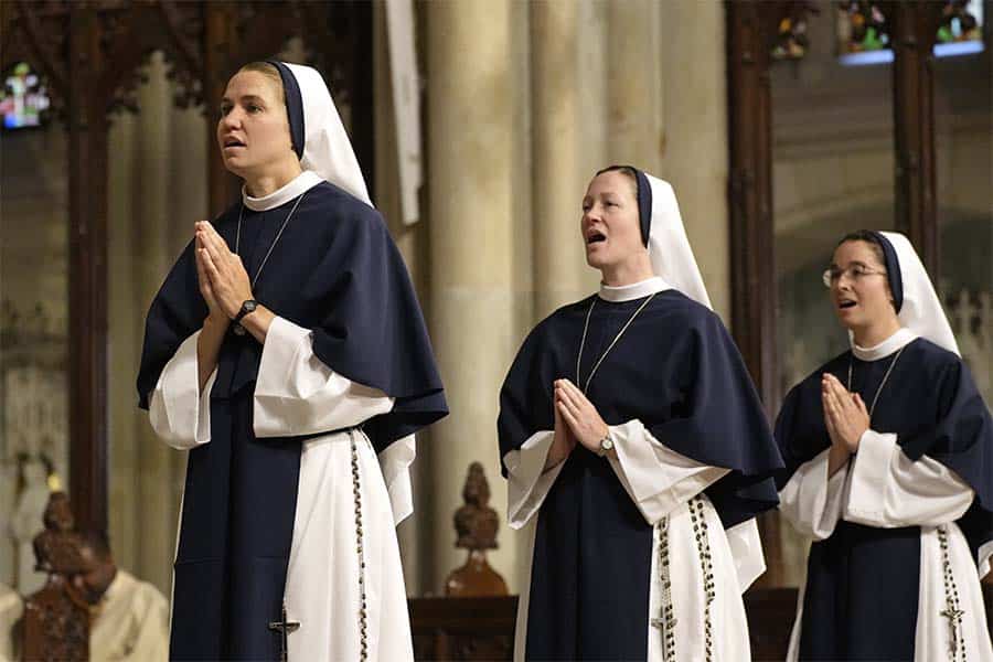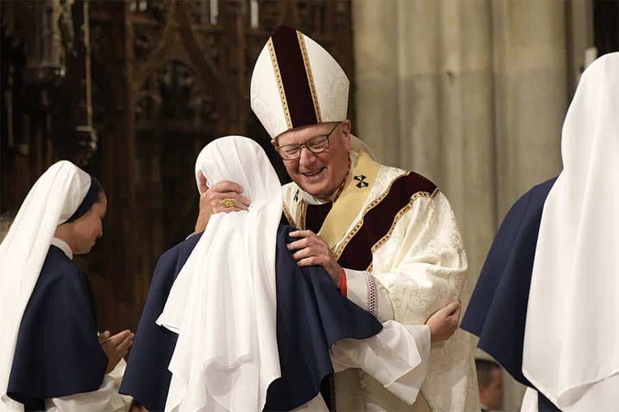 Sisters of Life ‘are the very mirror of God,’ cardinal says as 3 take perpetual vows August 13, 2025By Steven Schwankert OSV News Filed Under: Consecrated Life, News, Vocations, World News NEW YORK (OSV News) — “You’ve been the apple” of God’s eye “from all eternity,” New Cardinal Timothy M. Dolan told three Sisters of Life, quoting his predecessor, Cardinal John J. O’Connor, who founded the religious community. New York Cardinal Timothy M. Dolan smiles as he exchanges the sign of peace with Sister Leonie Therese after she and two other members of the Sisters of Life professed their perpetual vows during Mass at St. Patrick’s Cathedral in New York City Aug. 6, 2025. (OSV News photo/Gregory A. Shemitz) The Sisters of Life took their perpetual vows Aug. 6 at St. Patrick’s Cathedral, surrounded by more than 1,800 clergy, religious sisters and brothers, family members and friends. Cardinal Dolan was the primary celebrant and homilist of the solemn Mass of religious profession. He was joined by about 15 concelebrants, including Archbishop Gabriele Caccia, permanent observer of the Holy See to the United Nations; New York Auxiliary Bishops Edmund J. Whalen, vicar for clergy, and Peter J. Byrne; Auxiliary Bishop James Massa of Brooklyn, rector of St. Joseph’s Seminary; and Father Enrique Salvo, rector of St. Patrick’s Cathedral. Among those in attendance were Mother Agnes Mary Donovan of the Sisters of Life; Sister Joan Curtin, a member of the Congregation of Notre Dame, who is the New York Archdiocese’s vicar for religious; and Sister Mary Grace Walsh, an Apostle of the Sacred Heart of Jesus, who is the New York archdiocesan superintendent of schools. “Allow me to recall a pivotal insight (of) your legendary founder, my predecessor, John Joseph Cardinal O’Connor, so often repeated to you, his beloved Sisters of Life,” Cardinal Dolan said in his homily. Members of the Sisters of Life arrive for Mass at St. Patrick’s Cathedral in New York City Aug. 6, 2025. (OSV News photo/Gregory A. Shemitz) “The Lord is changing you, not so much into someone dramatically new, but into the very person he’s always meant you to be,” he continued. “It’s not so much transfiguration, the cardinal would insist, but restoration, restoration. For he would often say to you, ‘You’ve been the apple of his eye from all eternity. You were created in his very image and likeness; you are worth the most precious blood of his only begotten Son. You have the very flame of the divine in the sanctuary of your soul. You are the very mirror of God.'” The solemn Mass was celebrated on the feast of the Transfiguration, the traditional date for the Sisters of Life’s profession of perpetual vows. Each sister professed her vows of chastity, poverty and obedience before Mother Mary Concepta, superior general. Each sister also professes a special fourth vow to protect and enhance the sacredness of human life. Individually, each of the three also received a ring, representing her marriage to Jesus, the eternal bridegroom. “God is good, and he did it. He’s very faithful, and I think today I’m just in awe of his grace throughout my life, just ushering me to this moment so that I could give a generous yes,” Sister Beata Victoria, 38, said after the Mass in an interview with The Good Newsroom, the news outlet of the New York Archdiocese. Her previous missions have included evangelizing and serving with her community’s Hope & Healing mission in Toronto, which includes services to vulnerable, pregnant women, and accompaniment on the journey of hope and healing for those suffering after the experience of abortion. Sisters of Life Beata Victoria, left, Leonie Therese and Maria Augustine respond as New York Cardinal Timothy M. Dolan questions them on their readiness to dedicate themselves to God prior to professing their perpetual vows during Mass at St. Patrick’s Cathedral in New York City Aug. 6, 2025. (OSV News photo/Gregory A. Shemitz) Sister Maria Augustine, 33, described her journey from her native Long Island to professing her final vows at St. Patrick’s Cathedral. “After I was working as a teacher on Long Island, it was quite an unexpected call for me. That was nine years ago,” she said. “So I prayed about it very seriously for a year and felt like the Lord was asking me to enter. He was stirring up a great joy and eagerness in my heart.” Sister Léonie Thérèse, 35, has assisted the community’s newest members through a mission of formation and also provided support and services to women who find themselves pregnant in difficult circumstances in the Philadelphia area. The Sisters of Life community was founded in 1991 after Cardinal O’Connor, then archbishop of New York, published an article in 1989 in Catholic New York, the archdiocesan newspaper, titled “Help Wanted: Sisters of Life.” Eight sisters established the new order on June 1, 1991. It has now grown to more than 100. Their motherhouse is in Suffern. Steven Schwankert is the digital editor of The Good Newsroom, the news outlet for the Archdiocese of New York. This story was published in The Good Newsroom and distributed in partnership with OSV News. Read More Consecrated Life Relics of St. Thérèse of Lisieux coming to Baltimore Dominican Sisters of Hawthorne bring warmth of human connection to the dying Sisters of the Third Order of St. Francis put Christ at the center of health care Young people don’t come to church for its members, but for God, star French sister-influencer says Faith journeys enrich religious communities Pope to hermits: Your isolation is a connection with God, others, creation Copyright © 2025 OSV News Print