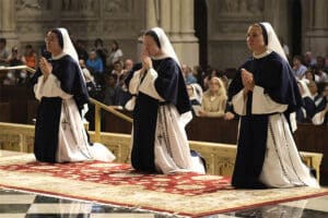Cardinal Dolan was the primary celebrant and homilist of the solemn Mass of religious profession. He was joined by about 15 concelebrants, including Archbishop Gabriele Caccia, permanent observer of the Holy See to the United Nations; New York Auxiliary Bishops Edmund J. Whalen, vicar for clergy, and Peter J. Byrne; Auxiliary Bishop James Massa of Brooklyn, rector of St. Joseph’s Seminary; and Father Enrique Salvo, rector of St. Patrick’s Cathedral.