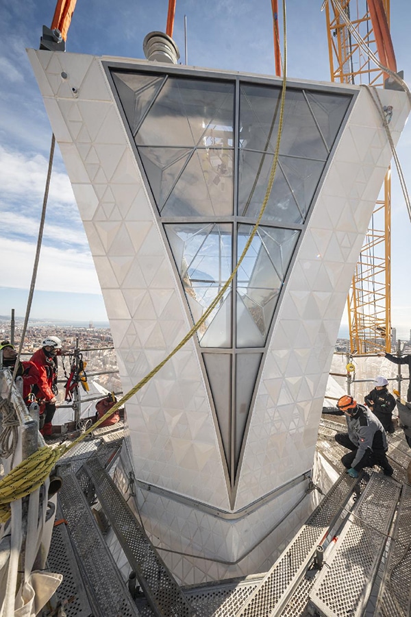 Spain’s Sagrada Familia Basilica invites visitors to see ‘Bible in stone’ April 13, 2026By Christopher Gunty Catholic Review Filed Under: Arts & Culture, Feature, Local News, News Visitors to the Basilica de la Sagrada Familia in Barcelona, Spain, don’t even have to go inside the basilica to be inspired. The exterior of the basilica itself is a “Bible in stone in the facades,” according to Mauricio Cortés Sierra, the lead architect for the basilica’s Tower of Christ that was completed earlier this year. Construction on the basilica, named for the Holy Family, began in 1882. Architect Antoni Gaudi took over the project in 1883, and proposed a bigger plan for the structure, one that he knew would take several generations to complete. The Tower of Christ rises above the Basilica de la Sagrada Família in Barcelona. (Courtesy Fundació Junta Constructora del Teple Expiatori de la Sagrada Familia) “He and the board agreed that it was not a bad thing. Being the work of a multi-generational project will encourage and create more sense of belonging to the community and the city,” Cortéz Sierra said in an interview for Catholic Review Radio. “He was perfectly aware that each generation will build a small or big part of the temple.” That plan is reflected in the exterior of the basilica, with the east-facing façade depicting the Nativity, completed by Gaudi. The next generation built the west façade, depicting the Passion, with scenes of the Via Crucis, the Passion of Christ, the Crucifixion and the Resurrection. Gaudi’s interest in presenting Scripture in stone and glass did not come from his own mind. “He was an admirer of Gothic architecture. Back in the day, the Gothic builders used the facades to explain the Bible, like in Chartres Cathedral (in France), for example. So definitely, there’s an inspiration. But he wanted each architectural element in the basilica to have hierarchy and a symbology that people could read it,” Cortéz Sierra said. His own work on the project began about 20 years ago, when as a doctoral student he met two of the key architects working on the basilica. He has been the lead architect on the Tower of Christ, which was capped off in February, bringing the basilica to its tallest height, at 172.5 meters (565 feet). It is one of 18 towers on the basilica. The height is significant because Montjuic, a nearby mountain, stands at 177.7 meters (583 feet). “Gaudi said we cannot surpass the work of God, which is creation,” Cortéz Sierra said. “So, we need to stay a little bit lower.” Pope Leo XIV will inaugurate the Tower of Christ June 10 during his pastoral visit to Spain. The date marks the 100th anniversary of Gaudi’s death. “It’s thrilling that the pope has accepted the invitation to preside the first solemn Mass that commemorates the 100 years of Gaudí’s passing, and then with the celebration of the benediction of the Tower of Jesus itself. It’s a big celebration, a historic moment for us,” Cortéz Sierra said. Workers place the upper arm on the cross atop the tower of Jesus Christ, the tallest tower of the Basilica of the Holy Family, known in Spanish as the Sagrada Familia, in Barcelona, Spain, Feb. 20, 2026. What was considered a milestone, the installation also completed the set of the Sagrada Familia’s six central towers. Pope Leo XIV will visit Barcelona in June 2026 to mark the centenary of the death of the Sagrada Familia’s iconic architect, Servant of God Antoni Gaudí. (OSV News photo/courtesy Sagrada Familia Twitter) As someone who spends each day at the basilica, a UNESCO World Heritage Site, the architect said he likes to arrive in the early morning hours, when the basilica is quiet. The interior features “a forest of columns. Gaudí designed a very innovative structure in inclined columns that split into branches and reach the ceiling vaults with a lot of light coming from above,” he said. One other notable feature of the interior is the scarcity of images of saints. Since Sagrada Familia is dedicated to the Holy Family, the only figures inside are the Virgin Mary and St. Joseph; St. George, a patron saint of Barcelona; and the crucified Christ. Gaudi worked 40 years on Sagrada Familia, and in addition to his detailed drawings for his vision for the basilica, he also made large plaster models to assist in continuing his work. Cortéz Sierra’s just-topped-off project, the Tower of Christ, benefitted from such guidance. “I think the project of the cross and the tower is based on little models that Gaudí left and also written descriptions of what it was, the symbology, what it wanted to include and what it wanted to represent,” he said. A multidisciplinary team of engineers in the façades, glassmakers, ceramists and more pushed the project “toward the goal of achieving Gaudí’s vision and what he wanted to communicate.” He added, “It is also no coincidence that each one of the Nativity and Passion facades is divided in three portals, devoted to the three virtues – faith, charity and hope. And I think the whole temple communicates that faith, charity and hope.” The full Catholic Review Radio interview with Cortéz Sierra will be broadcast April 19 on WMET, 1160 AM and 103.1 FM, in the Washington, D.C., area; and on WSJF, 92.7 FM, in the Sykesville area. It will be posted on most podcast platforms April 20. Email Gunty at editor@catholicreview.org. Readers of the Catholic Review will have a chance to see the basilica in all its splendor during a pilgrimage to Portugal, France and Spain Oct. 25-Nov. 4, 2026. The trip includes visits to Fatima and Lourdes, sites of Marian apparitions; Burgos, Spain; the cathedral and basilica in Barcelona; and other locations. Discounted pricing, including airfare from Dulles Airport, is available until April 19, with prices increasing after that. Read More Arts & Culture Cultural trends and technology threaten contemplation, Cardinal Roche says Sh