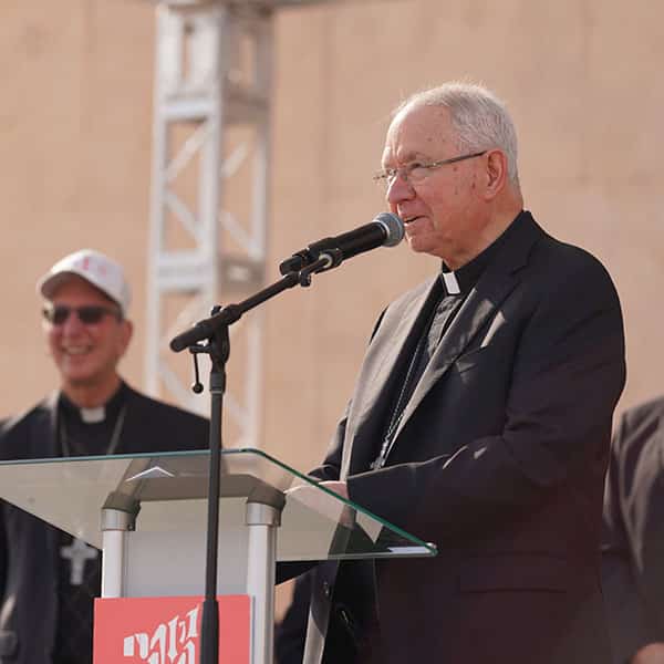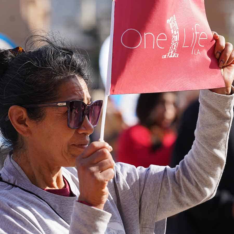 Speakers, attendees at OneLife LA push for greater respect for life: ‘Everyone is a blessing’ January 28, 2026By Mike Cisneros Angelus Filed Under: News, Respect Life, World News LOS ANGELES (OSV News) — When Bishop Mark J. Seitz of El Paso, Texas, took his turn to speak at this year’s OneLife LA event, he chose to bring up a painful subject: his father. Bishop Seitz said his father walked away from him and his nine other siblings in 1976 and stayed away for 40 years, resurfacing when he needed care in the last years of his life. Archbishop José H. Gomez of Los Angeles speaks outside the Cathedral of Our Lady of the Angels before the “Walk for Life” through the streets of downtown Los Angeles as part of the OneLife LA celebration on Jan. 24, 2026. (OSV News photo/Sarah Yaklic, courtesy Archdiocese of Los Angeles) Caring for an elderly parent can be frustrating, exhausting and awkward. For Bishop Seitz, the estrangement made it even more difficult. But in describing how he and his siblings put that aside to care for their dad until his death at age 93, the bishop sought to make a deeper point about the mission to protect human dignity. “It was beautiful, it was challenging, it was hard, it was scary, it was all of those things,” Bishop Seitz said. Personal testimonies like Bishop Seitz’s at the OneLife event highlighted the challenges, responsibilities — and blessings — in being pro-life in today’s environment. Apart from abortion, the Jan. 24 event at the Cathedral of Our Lady of the Angels also highlighted other life issues, among them immigration, drug abuse and assisted suicide. The event drew some 5,000 people and included speakers, musical performances, a “Walk for Life” procession through the streets around the cathedral, and a Requiem Mass for lives lost to abortion. It was emceed by Father Matt Wheeler, pastor at Our Savior Church and the University of Southern California’s Caruso Catholic Center, and Daniela Verástegui, an entrepreneur, influencer, and devoted wife and mother of five. Known for his longtime advocacy for migrants at both his border diocese and among the U.S. bishops, Bishop Seitz acknowledged that many Americans — Catholics included — find it uncomfortable to look at those who are weak and suffering. “We kind of recoil before human vulnerability, don’t we?” Bishop Seitz said. “We ignore it, we hide it away. We don’t like to acknowledge it. And the sick, the frail and the elderly all suffer because of it. There are tons of isolations in our society today. “When we look at our country today, we’ve lost the idea that every human life is a blessing, or that we have obligations to one another. We divide up the pie. Some lives are not worthy of our concern.” Archbishop José H. Gomez of Los Angeles sounded a similar tone in remarks to kick off the event, saying that as America celebrates its 250th anniversary this year, if the right to life is not protected, no other human right can be guaranteed. A woman holds a banner outside the Cathedral of Our Lady of the Angels before the “Walk for Life” through the streets of downtown Los Angeles as part of the OneLife LA celebration on Jan. 24, 2026. (OSV News photo/Sarah Yaklic, courtesy Archdiocese of Los Angeles) “OneLife LA has never been about politics,” Archbishop Gomez said. “We are a religious movement, a stirring of the heart and conscience. A movement of the Spirit. OneLife is the dream of a city of love where every human life is sacred, where every person is cherished, welcomed, and cared for. “And we mean every human life. At every stage and in any condition. No matter what their skin color, or where they came from, or the language they speak, or what documents they have.” The day’s other speakers helped address an array of pro-life issues. Nora Yesenia, a former host of “Buenos Días LA” on Los Angeles Catholic radio, spoke of her experience losing her baby and losing part of her reproductive system after emergency surgery. After being told that it would be nearly impossible to have a child, Yesenia introduced her husband, carrying in his arms their 5-month-old daughter. She also announced that she was pregnant again, to loud applause. “If there’s something I want you to remember: God decides,” Yesenia said. After a performance by Mexican singer Miriam Solis, she introduced her niece, Sofia Alatorre Gonzalez, who shared her story of surviving a fire at age 8 that claimed her grandmother’s life and led to years of medical care and trauma. Wearing short sleeves that showed the burn scars across her arms, Gonzalez said her faith has helped her stay strong in times of challenges. “A big part of my entire story is the faith I have in God — how he was there during the most difficult moments of my life, and how he has also been there in the good times,” Gonzalez said. “How, through him, even when I didn’t understand why all of this had to happen to me, or why I had to be the one who suffered that day, today I can see that the things that happen are meant to teach us.” During her second performance, Solis dedicated a song to Gonzalez and spent much of it with her arm clasped around her. From there, the thousands took to the pavement in a “Walk for Life” demonstration through downtown Los Angeles, some singing, some praying the rosary, some carrying signs or banners, and others pushing their children or the elderly in wheelchairs and strollers. Ann Vaeth walked with her husband, Joe, and their three kids. Parishioners at St. Kateri Tekakwitha Church in Santa Clarita, they’ve been attending OneLife LA for about 10 years. Ann Vaeth said it was important to show society — and her children — that you can’t just talk the talk about being pro-life, you have to walk the walk too. “It’s not just something we preach from the pulpit or behind our closed doors,” she said. “This is something we’ll go out there and we’ll h