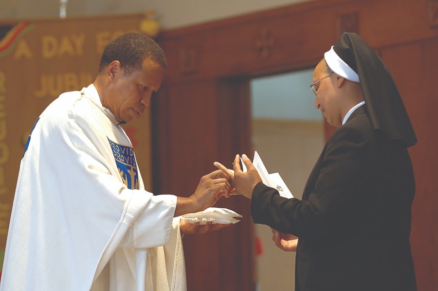 St. Frances principal fulfills dream to become Oblate Sister of Providence August 14, 2006By George P. Matysek Jr. Catholic Review Filed Under: Consecrated Life, Feature, Local News, News, Vocations Father Anthony Bozeman, S.S.J., presents Sister Marcia Hall, O.S.P., with a ring during her rite of final profession as an Oblate Sister of Providence Aug. 14, 2006. The ring is a symbol of Sister Marcia’s commitment to Christ. (Owen Sweeney III/CR Staff) As a youngster growing up in Trenton, N.J., Sister Marcia Hall, O.S.P., was so awed by the Oblate Sisters of Providence who taught in her parish elementary school that she thought she should become one. The African-American Sisters carried themselves in a graceful, confident way that reflected their love of God, Sister Marcia remembered. And they ruled the school with strict discipline and genuine compassion. “They made sure the students learned,” said Sister Marcia, principal of St. Frances Academy in East Baltimore. “We knew we were cared about.” It took more than four decades, but Sister Marcia fulfilled her childhood dream, professing her final vows as an Oblate during a jubilant Aug. 14 liturgy at Our Lady of Mount Providence Convent in Baltimore. Wearing the black veil of her religious order, Sister Marcia stood in front of the altar and pledged to live the rest of her life in poverty, chastity and obedience. She promised to “zealously” follow the Gospel and the constitutions of the Oblate Sisters of Providence, accepting a ring that symbolized her commitment to Jesus Christ. Applause thundered throughout the chapel as Sister Mary Annette Beecham, O.S.P., superior general of the Oblates, affirmed that Sister Marcia was a full member of the religious community, “sharing all things in common for the future.” “In this time of individualism, Sister Marcia is more about saying yes to the king than the blingbling,” said Father Anthony Bozeman, S.S.J., pastor of St. Joan of Arc in New Orleans and a close friend who celebrated the Mass and delivered the homily. “For this woman, it is more important to serve Christ and the church than all the trappings of this world,” said Father Bozeman, as members of the congregation shouted, “Amen!” and nodded their heads in approval. “With her radical yes to God, the Oblates continue to move on,” the Josephite priest said. “We find another worker in the vineyard of the Lord.” It took a long time for Sister Marcia to discern her call to religious life. The initial childhood inclination to pursue the convent wasn’t seriously considered by a young woman focused on other forms of service. Sister Marcia earned bachelor’s, master’s and doctoral degrees in sociology and spent several years as a college professor. She later taught English at St. Frances Academy and St. Katharine School, part of the Queen of Peace cluster in Baltimore, and was the assistant principal at Seton Keough High School in Baltimore. But in her early 30s, the idea of becoming a Sister returned, and after 11 more years of prayer and discernment, it firmly took hold. She entered the Baltimore-based order in 2001 after having a vision of herself in the habit of the Oblates. “I have a deeper prayer life and understanding of God’s love for me,” said Sister Marcia, 49. Sister Marcia’s profession of final vows was a moment of great joy for the Oblates, an order of Sisters founded in Baltimore by Mother Mary Lange in 1828 with a special outreach to Black Catholics. Two Sisters from Costa Rica entered the religious order within the last few years, but it has been years since someone from the United States has professed final vows. “It is like a shot in the arm to have her in our community,” said Sister Rita Michele Proctor, O.S.P., principal of Mother Lange Catholic School in Baltimore. “As long as we have one, the legacy of Mother Lange continues,” she said. “It’s not about numbers, it’s about quality.” Sister Stephen Beaufort, O.S.P., formation and vocation director for the Oblates, said her religious order has received vocations from Africa, Costa Rica, Cuba, Dominican Republic and Belize. But like other religious communities, it has been a challenge attracting Americans. There are currently approximately 90 Oblates and the average age of the Sisters is 70, she said. “Vocations are slow because people are wrapped up in their activities and their lifestyles, and are not taking the time to look at what God is saying to them,” Sister Stephen said. “Many find it hard to give up their home, their job and their possessions.” Yet Sister Stephen said there are women with a strong desire to serve God. They just need encouragement. “We can always encourage people to look at their lives and ask, ‘What am I here for?’” she said. “You’ve got to pray daily, and let them know we are praying for them.” The Oblates host discernment weekends for women considering religious life. Formation consists of a pre-candidacy year, a canonical novice year, and an apostolic novice year before a Sister professes first vows. Those promises are renewed in the next three consecutive years before final vows are professed, Sister Stephen said. In an effort to promote vocations, Sister Stephen visits girls in elementary schools and Sister Marcia visits teens in high school. During the liturgical celebration of Sister Marcia’s profession of final vows, Father Bozeman intoned the Litany of the Saints. A choir from her family’s home parish of Church of the Blessed Sacrament/Our Lady of Divine Shepherd, Trenton, N.J., sang songs of praise accompanied by shouts of joy from the congregation. Just after the last strains of a Zulu folk song, “We are Marching in the Light of God,” echoed in the chapel at the end of the liturgy, Sister Marcia’s parents told The Catholic Review they were proud their daughter had committed her life to God. “I have to say, it’s the happiest I’ve ever seen he