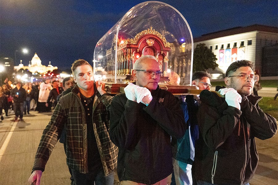 St. Thérèse of Lisieux and her trust in God’s merciful love still resonate with faithful May 4, 2025By Katie Yoder OSV News Filed Under: News, Saints, World News Bishop Donald J. Hying of Madison, Wisc., needed to make a difficult decision, so he turned to one of his favorite saints for help: St. Thérèse of Lisieux. “I prayed to Thérèse to intercede for me so that I could see what the Lord’s will was in this — and I prayed for a sign,” he told OSV News about the 19th-century French Carmelite nun (1873-1897) who promised to spend her heaven doing good on earth. That same day, after doing a prayer service at a church where he knew no one, a woman approached him with a little triptych of St. Thérèse. A solution to his dilemma became clear. “Things like that have happened many, many times in my life,” the bishop said of the intercession of St. Thérèse, whom he has had a devotion to since he was a teenager. Men carry relics of St. Thérèse of Lisieux during the annual Candlelight Rosary Procession from the State Capitol to the Cathedral of St. Paul in St. Paul, Minn., Oct. 6, 2023. May 17 marks the centenary of her canonization. (OSV News photo/Dave Hrbacek, The Catholic Spirit) The bishop and other experts spoke with OSV News about St. Thérèse — a saint beloved worldwide for her “little way” of childlike trust and confidence in God’s merciful love — and her impact on the church ahead of the 100th anniversary of her canonization on May 17. Her path to sainthood is a remarkable one: At age 15, she entered the cloistered Carmelite community at Lisieux where she remained until she died of tuberculosis at 24. She was quickly canonized 27 years later, in 1925. “St. Thérèse is for everyone,” Mary Therese Lambert, international development director of the Society of the Little Flower, said in emailed comments. “She teaches us that God doesn’t expect perfection, but love. That we don’t have to accomplish great things, but rather do small things with great love.” “Her message is not one of pressure — it’s one of peace, surrender and hope,” Lambert added about St. Thérèse, also known as “The Little Flower.” “I believe she continues to whisper to people’s hearts: ‘You are loved. You matter. Keep trusting.'” This message appears in the writings of St. Thérèse, who became well-known through her autobiography, “Story of a Soul,” read by millions. Today, she is one of four women named a doctor of the church for her significant contributions, and her words appear multiple times in the Catechism of the Catholic Church. Several popes have expressed a devotion to her including, most recently, Pope Francis who canonized her parents and wrote an apostolic exhortation about her and her “timely witness” that “endures in all the grandeur of her little way.” The late pontiff opens the 2023 letter, titled “C’est la confiance,” by quoting St. Thérèse: “C’est la confiance et rien que la confiance qui doit nous conduire à l’Amour” or “It is confidence and nothing but confidence that must lead us to Love.” These words, he says, “sum up the genius of her spirituality.” When looking at her impact on the church and her doctrinal contributions, experts pointed first and foremost to St. Thérèse’s “little way.” “Some people will say that it is simply ‘doing ordinary things with extraordinary love,” Discalced Carmelite Father Steven Payne, chair at the Center for Carmelite Studies at The Catholic University of America in Washington, said in emailed comments. “And that may be part of it, but only part. We would be misunderstanding the mature Thérèse if we started tallying up these ‘ordinary things’ (as she did in childhood), thinking they could somehow earn us heaven.” “We might, therefore, say that Thérèse’s ‘little way’ really consists in abandoning ourselves with complete trust to God’s infinite merciful love, throwing ourselves into the arms of Jesus,” he added. “Then it will be out of gratitude for that completely unmerited merciful love (not to try to earn it) that we carry out those ‘ordinary things with extraordinary love.'” With this “little way,” Lambert added that St. Thérèse “helped reframe holiness not as something reserved for mystics or martyrs, but as something we can live out in our daily lives.” Looking at the last 100 years, Father Payne also recognized the saint’s influence in “the transformation of Catholic spirituality leading up to Vatican II’s emphasis on the ‘universal call to holiness'” for all. “For a while in the immediate aftermath of the Second Vatican Council, there was a certain turning away from what seemed like an outdated and overly sentimental piety sometimes associated with devotion to the Little Flower,” he said. “But the publication of a ‘critical edition’ of her writings and more careful studies led to a deeper appreciation of her profound message, sometimes obscured for contemporary readers by her flowery language.” He pointed to the many vocations to religious life that she inspired as well as the saints and important figures she influenced from St. Teresa of Kolkata and St. Faustina Kowalska to Servant of God Dorothy Day. She has not only inspired many active congregations or ecclesial movements but also surfaced as the subject of plays, operas, novels, films and more. “How many Catholic parishes, how many Catholic homes, have a statue or image of St. Thérèse in some place of honor?” he asked. “She is certainly one of the best known and most loved saints in the church today.” These experts anticipated that St. Thérèse’s impact will continue — and perhaps even increase — in the future. “I just see her ‘little way’ as being a permanent part of the whole patrimony and legacy of the church until the end of time,” Bishop Hying said. “I think her star will only shine brighter with 