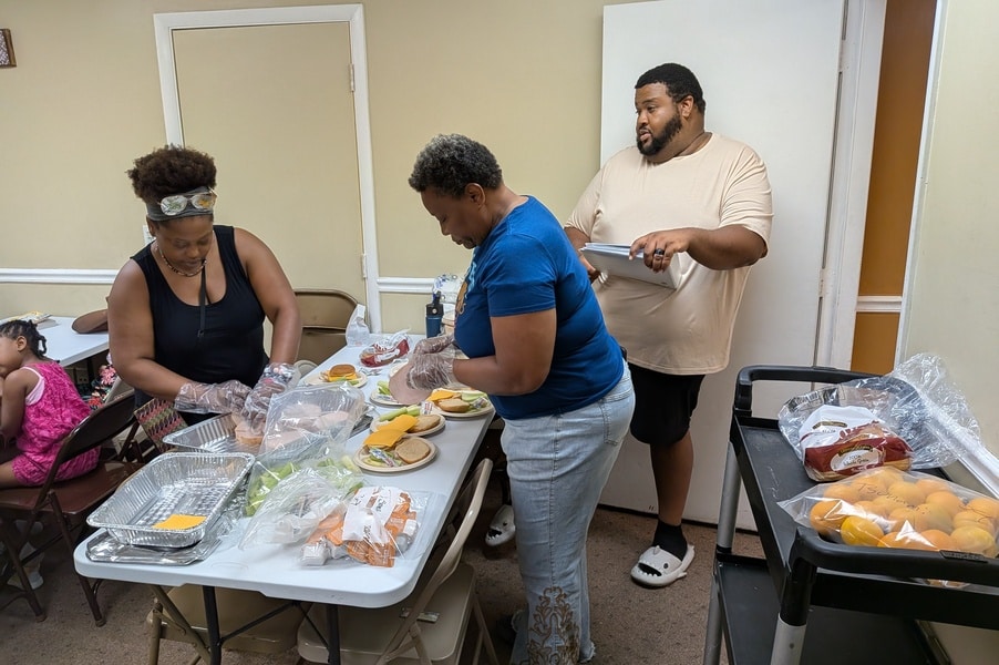 Sun Meals Program a blessing for many August 20, 2025By Katie V. Jones Catholic Review Filed Under: Feature, Local News, News, St. Vincent de Paul Baltimore Turkey-and-cheese sandwiches – that is 12-year-old Aiden Jennings’ favorite meal for dinner. The bagels for breakfast are good, too, she adds. Arafat Aremu, 10, likes the chicken dinner, and chips when they are available. For the 35 young campers at Tsunami Martial Arts in Windsor Mill, the breakfasts and dinners served at camp are available through the Sun Meals Program sponsored by Good Harvest Community Kitchen of St. Vincent de Paul Baltimore. “The meals have been a blessing,” said Lisa Scott, administrator of Tsunami Martial Arts’ summer camp. “For some of these kids, it’s all they get.” From left, Mickey Jennings, Lisa Scott and Deovan Marshall prepare sandwiches provided by Sun Meals Aug. 14 for the campers at Tsunami Martial Arts in Windsor Mill. (Katie V. Jones/CR Staff) Funded by the U.S. Department of Agriculture, the Sun Meals program is a federal program administered by the state. Good Harvest applies to the state on behalf of its organizations, including Tsunami Martial Arts, for the program. “Once approved, we can start serving meals. It is as simple as that,” said Marletha Booker, Good Harvest Community Kitchen’s director of food access and business development. This summer, 36 programs located in Baltimore City and Baltimore and Howard counties participated in the Sun Meals program, which offers breakfast, lunch, snacks and dinner. Organizations are allowed to pick two options. Each meal has different requirements, Booker said. Breakfast, for example, must include milk, a grain and fruit or vegetables. Dinners must have milk, protein, vegetables, fruit and a grain. “Snacks don’t have to have milk,” Booker said. “Snacks have to have two of the five options. For us, we typically serve grain and fruit juice as we noticed students get tired of milk.” At Tsunami, campers are served breakfast and dinner, and they bring their own lunch. Meals are served at a set time, and each child receives one serving of everything with no seconds offered. Scott has been known from time to time to add either strawberry or chocolate syrup to milk and to serve one pasta dish hot, rather than cold, because the campers prefer it that way. Tsunami also always has its own stash of bread on hand, Scott said because “kids like bread.” “You do what you have to do to get them to eat food,” Scott said. “For the most part, they eat it all.” For any unwanted food, the campers at Tsunmani know not to handle it and to put it in the center of the table, so others may take it. “We call it the share table,” Scott said. Ranging in age from 5 to 12, the campers at Tsunami enjoy a variety of events from going to the movies, swimming and visiting the library as well as outings including go-kart racing, visits to Urban Air (a trampoline park) and trips to Washington, D.C., to visit the Smithsonian museums. As it is an eight-week karate camp, they also get instructions in the art, which is important, Scott said, because karate “builds confidence” in the students. The meal program, “is equally if not more important,” Scott said. “For some, we know they might not get much after this,” Scott said. “People need it.” Email Katie V. Jones at kjones@CatholicReview.org Read More St. Vincent de Paul Baltimore St. Vincent de Paul of Baltimore seeks Adopt a Family sponsors Local works of mercy continue amid government chaos Archbishop Lori offers encouragement to charitable agencies affected by federal cuts Baltimore Mass to celebrate local charities in time of perilous cuts International members tour St. Vincent de Paul programs in Baltimore St. Vincent de Paul of Baltimore seeks Adopt a Family sponsors Copyright © 2025 Catholic Review Media Print