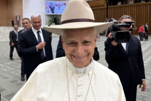 SYDNEY (OSV News) — Sydney newlyweds James Lu and Fiona Choi ticked off some unusual items on their Europe vacation list: wedding clothes and shoes along with an Akubra hat and Pope Leo XIV’s estimated head size.