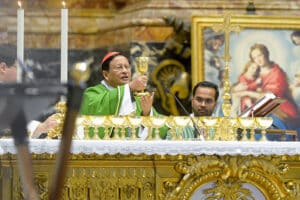 “Our synodal journey is not a pre-programmed space odyssey with fixed mathematical equations. Rather, when God calls us, he becomes our guide, our roadmap and our companion,” Cardinal Bo, archbishop of Yangon, Myanmar, said in his homily during a Mass in St. Peter’s Basilica with synod participants Oct. 23.