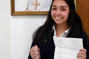 Mullinax is an 18-year-old senior at Notre Dame High School and is a parishioner of the Basilica of Ss. Peter and Paul. In September, she wrote a letter to Pope Leo but wasn’t sure if she’d receive a response.