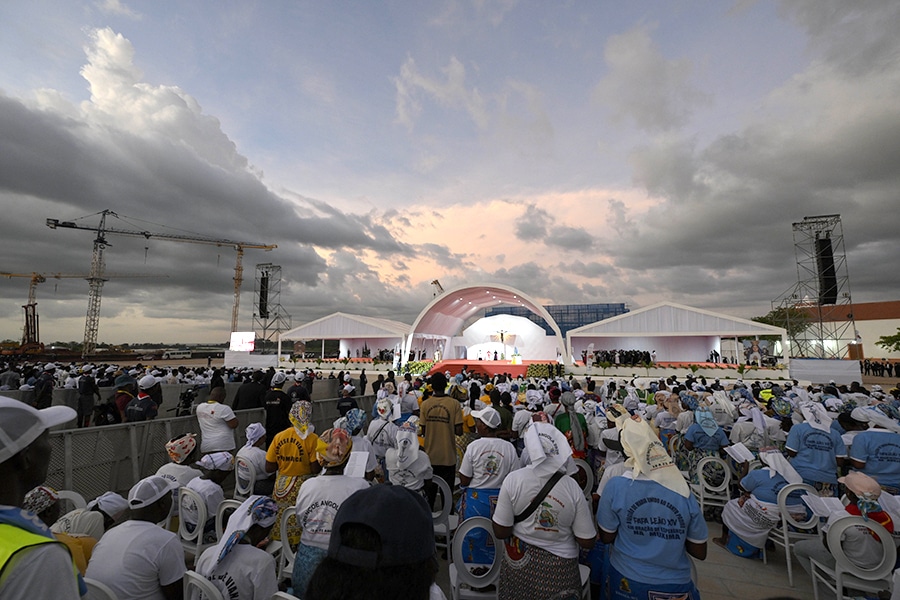 ‘The heart of the Church’ is ‘alive and beating’: Pope Leo XIV leads rosary at beloved Muxima Marian shrine in Angola April 20, 2026By Courtney Mares OSV News Filed Under: Feature, News, Vatican, World News MUXIMA, Angola (OSV News) — Pope Leo XIV led tens of thousands of Angolan Catholics in praying the rosary April 19 at southern Africa’s most visited Catholic shrine, calling the pilgrimage site a place where “the heart of the Church” is “alive and beating.” Pope Leo XIV leads the rosary at the Sanctuary of Our Lady of Muxima in Muxima, Angola, April 19, 2026. (OSV News photo/Simone Risoluti, Vatican Media) The pope traveled by helicopter from Angola’s capital, Luanda, to the Sanctuary of Mama Muxima, which means “Mother of the Heart” in the local Kimbundu language. Pope Leo made the pilgrimage to the beloved Marian shrine situated on the banks of the Kwanza River after celebrating morning Mass for roughly 100,000 faithful in Kilamba, a district near the Angolan capital city of Luanda. Local authorities estimated approximately 30,000 pilgrims gathered on the Muxima shrine’s esplanade for the recitation of the rosary, with even more gathered in surrounding areas. Many had camped at the site for two or three days in anticipation of the papal visit, enduring 90-degree heat in the hours before his arrival. The crowd greeted the pope with singing and dancing as he moved through the grounds in a golf cart. Upon arrival, Pope Leo entered the historic church for a moment of private prayer, which was broadcast on large screens for the crowd, who cheered loudly when they saw Pope Leo kneel before Our Lady, before presiding over the recitation of the glorious mysteries of the rosary and the Litany of Loreto. As the sun set, casting orange light across the sky, the crowd joined the pope in singing the Salve Regina. “We are in a sanctuary where, for centuries, many men and women have prayed in times of joy and also in moments of sorrow and great suffering in the history of this country,” the pope said, speaking in Portuguese. “For a long time now, Mama Muxima has quietly worked to keep the heart of the Church alive and beating.” A girl holds a cross ahead of a prayer service led by Pope Leo XIV at the “Mama Muxima” Shrine, during his apostolic journey in Africa, in Muxima, Angola, April 19, 2026. (OSV News photo/Guglielmo Mangiapane, Reuters) The church, formally dedicated to Our Lady of the Immaculate Conception, was first established in 1599 during the era of Portuguese colonial Angola. More than 1 million pilgrims visit the shrine during its largest pilgrimage alone, which occurs each year between Aug. 31 and Sept. 1. Pope Leo reflected on how the faithful had over the centuries spontaneously renamed the shrine “Mama Muxima,” calling it “a beautiful title, which makes us reflect on the heart of Mary: a pure and wise heart, capable of treasuring and pondering the extraordinary events in the life of the Son of God.” The pope also spoke one line in the local Kimbundu language, quoting a hymn the crowd had sung, “Mama Muxima, tueza kokué, Mama Muxima, tutambululé,” meaning “Mother of the Heart, we come to you to offer you everything.” Pope Leo underlined that praying the rosary commits us to loving every person with a mother’s heart and to “dedicating ourselves to the good of one another, especially the poorest.” “We strive without measure so that no one may lack love … that the hungry may have enough to eat, that the sick may receive the necessary care, that children may be guaranteed a proper education, and that the elderly may live their later years in peace,” he said. Mirian Dos Santos, 25, of Luanda, said she had kept an all-night vigil at the shrine the evening before the pope’s arrival. Pope Leo XIV holds a baby at the Sanctuary of Our Lady of Muxima in Muxima, Angola, April 19, 2026. (OSV News photo/Simone Risoluti, Vatican Media) “We are very happy to receive our dear pope here,” she told OSV News. “Mama Muxima is our heart. Mama Muxima is the first Lady that we go to, we call her, we ask for her intercession.” Dinis Mayomona, a seminarian who attended the pope’s Mass in Kilamba earlier in the day, described the shrine as a place of total surrender. “We surrender all our suffering, all our dreams … because we have got many problems here,” he said, “and once we surrender our suffering in the hands of Mama Muxima, we know perfectly that she will solve our problems because she is beside her Son.” The shrine carries a complex and painful history. For nearly 300 years, the site along the Kwanza River served as a waypoint for enslaved Africans being marched to the Atlantic Coast for transport to the Americas. It is also intertwined with the legacy of Queen Nzinga (1582–1663), ruler of the kingdoms of Ndongo and Matamba in present-day Angola. Nzinga waged a 30-year war against Portuguese colonial forces, significantly disrupting the transatlantic slave trade, and eventually returned to the Catholic faith, signing a peace treaty with Portugal in 1656. Angolan Catholic radio journalist Cornelio Bento, traveling with the Vatican press corps, told OSV News the shrine holds a special place in Angolan Catholic life, particularly for women hoping to conceive. “If you go to Muxima Shrine, you will listen to a lot of history of miracles,” he said. Pope Leo also commended a construction project currently underway to build a new, larger shrine at the site — a project that has been years in the making. Following the rosary vigil, the pope returned by helicopter to Luanda, where he was to spend the night before flying Monday to Saurimo, in Angola’s eastern Lunda Sul province. Read More Vatican News Pope Francis remembered in Buenos Aires as ‘guiding light’ for Argentine Church The Eucharist can ‘rekindle lost hope,’ Pope Leo says at Sunday Mass in Angola A father’s farewell: Journalist recalls person
