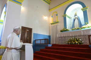 Dinis Mayomona, a seminarian who attended the pope’s Mass in Kilamba earlier in the day, described the shrine as a place of total surrender.