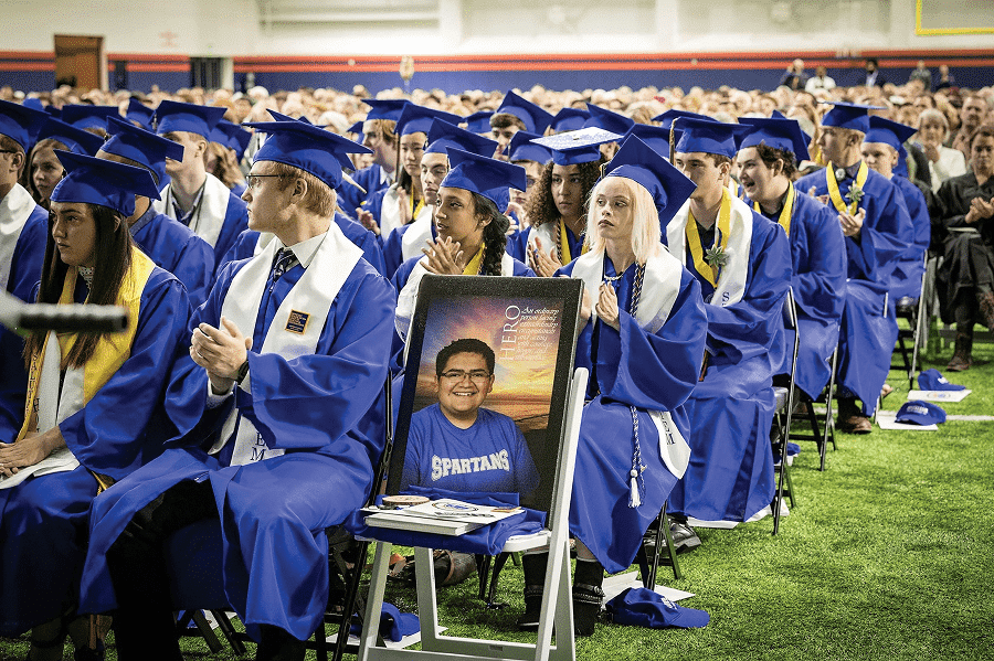 This Colorado teen died saving others in a school shooting — is he a future saint? August 16, 2025By Simone Orendain OSV News Filed Under: Feature, News, Saints, Vatican, World News (OSV News) — The bishop of Colorado Springs, Colorado, announced in late July his office would “study and discern” the “massive undertaking” of determining whether to open a sainthood cause for a teenager who was killed after he tackled the shooter during a school shooting incident six years ago in suburban Denver. Eighteen-year-old Kendrick Castillo was the only student who died in the STEM School Highlands Ranch shooting on May 7, 2019, that left eight students injured. Because of his actions, no other students lost their lives in the shooting, according to local officials. Two students, 16-year-old Alec McKinney and 18-year-old Devon Erickson, were convicted on dozens of charges for carrying out the shooting and sentenced to life imprisonment. Months after Kendrick’s death, the Knights of Columbus conferred honorary membership on him and gave his parents a Caritas Medal, their second highest honor. Two priests from St. Mark Catholic Church in Highlands Ranch submitted the petition and preliminary supporting materials for a possible sainthood cause for Kendrick to Colorado Springs Bishop James R. Golka. “When I was assigned here and they were talking about changing the name of this street over here” in honor of the teen, explained Father Patrick DiLoreto, whose first assignment as a newly ordained priest was at St. Mark starting July 2024. “It just was something that kept coming up on my heart, every single time I got onto Kendrick Castillo Way,” he told OSV News, adding that it was like “an invitation to talk to Father Bierbaum about this process. And when I did talk to him about it, he said that it was on his mind as well and so we took that as a sign that ‘OK, maybe the Holy Spirit does want us to pursue this.'” Father Gregory Bierbaum, pastor at St. Mark, where Kendrick’s parents John and Maria Castillo are new parishioners, did not know the boy personally, but said he was called to minister at the shooting scene. He attended Kendrick’s funeral Mass and has followed his story for the past six years. “And being so impressed, just moved and touched in my heart about what Kendrick had done to literally throw himself on the shooter, thereby saving however many lives, we don’t know. But … in our interviews with his parents and Father’s (DiLoreto’s) other research, Kendrick also exhibited really wonderful piety and strong Catholic faith in his life in general, even before this heroic action. He was very evangelistic,” he said. Father Bierbaum told OSV News he learned that Kendrick would often talk to his peers about the faith. The boy, who was days away from high school graduation and planning to study aerospace engineering, never had a photo taken in which he was not smiling, according to John Castillo in a 2023 “Fallen Hero” video honoring Kendrick Castillo at the inaugural Douglas County Heroes Gala. In the video, John said his son, who excelled at robotics and engineering, transferred to the Science Technology Engineering and Mathematics, or STEM, charter school — on the recommendation of a teacher from his Catholic school — which was equipped with the technology and labs that his son was “to the moon” excited about. A chair sits empty in honor of Kendrick Castillo at the STEM School Highlands Ranch graduation in Colorado May 20, 2019. Castillo, a Catholic, was an 18-year-old senior at the school when he lost his life trying to protect fellow students from a shooter, and posthumously made an honorary Knight of Columbus. Bishop James R. Golka of Colorado Springs, Colo., announced in late July 2025 his office would “study and discern” the “massive undertaking” of determining whether to open a sainthood cause for Castillo. (OSV News photo/courtesy Knights of Columbus Council 4844) “Kendrick took what he learned in his Catholic faith in private school and marched it right into that public charter school,” said John, a Knight of Columbus from the South West Denver Council. “Kendrick went into that school not knowing anybody, and brought his personality, his talent and his love for people” whom he easily made friends with. The video showed footage of Kendrick’s bedroom, which included a bed draped with more than a dozen medals on colorful ribbons; satiny award ribbons hanging from the frame of a memorial photo of the smiling Kendrick, arms open wide, with the quote from John 15:13, “Greater love has no one than this, to lay down one’s life for one’s friends”; a Bible among other articles on the shelf above his bed, and several NASA labeled accessories. According to the Kendrick Castillo memorial website of the Castillo family, a Douglas County committee is raising funds for a monument in his honor at a local park and to create a robotics scholarship in his name. The priests submitted 80 pages of material to Bishop Golka, which included an interview with Kendrick’s parents. They said they collected enough preliminary information to classify him under three of the four means by which to become a saint. These include the new category created by the late Pope Francis of “offering of life” in which one gave up one’s life for the good of another, martyrdom, or one who displayed heroic virtue. (The fourth means is a reputation for holiness). “It became very clear to us from John and Maria’s sharing the story of their son’s life that he was an authentically holy person,” said Father Bierbaum. “Now, that’s not Father or I making that determination officially for the church, but that was the sense that we got … even before the heroic act, he just lived a life that was so (much) one of faith and service and holiness and caring for others.” In a December 2019 posting on the Knights of Columbus website, John Castillo ca