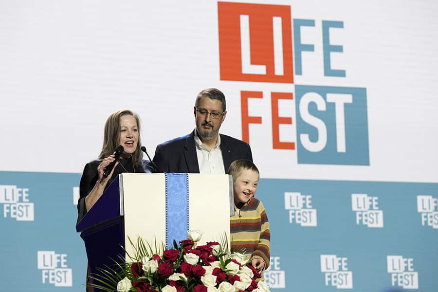 Thousands of pro-life Catholics attend Life Fest affirming ‘love is the answer’ January 23, 2026By Katie Yoder OSV News Filed Under: Knights of Columbus, News, Respect Life, World News OXON Hill, Md. (OSV News) — Michael McGivney Schachle lit up the room as he walked onto the stage at Life Fest with his parents. “Father McGivney, pray for me,” the 10-year-old said, smiling into the microphone. His parents, Daniel and Michelle Schachle, went on to tell the story of their son’s miraculous healing in the womb attributed to the intercession of Michael’s namesake, Blessed Michael J. McGivney, founder of the Knights of Columbus. Daniel Schachle, past grand knight of St. Mary’s Mission Council 8083 in Savannah, Tenn., and a Knights of Columbus general agent, stands on stage with his wife, Michelle, and son Mikey at Life Fest in Oxon Hill, Md., Jan. 23, 2026. Mikey’s healing in utero, attributed to Blessed Michael McGivney’s intercession, was declared a miracle and led to Father McGivney’s beatification in 2020. (OSV News photo/Paul Haring, Knights of Columbus) “He’s got an extra chromosome 21, which I always say now is the ‘joy chromosome’ — he’s got extra joy,” Daniel told OSV News of Michael who has Down syndrome and was diagnosed with a life-threatening condition called hydrops fetalis before birth. “He loves completely and he loves freely … I think if we were all more like him in our attitude, the world would probably be a better place.” Their testimony was one of several celebrating life and love at the fourth annual Life Fest held by the Knights of Columbus and Sisters for Life. The morning rally and Mass, which took place hours before the 53rd annual March for Life, drew thousands of pro-life Catholics that made up a largely youthful crowd. They gathered just outside the nation’s capital at the Gaylord National Resort & Convention Center in Oxon Hill, Maryland. Sister of Life Faustina Maria Pia told OSV News that she hoped the young people there realized the gift of their own life because “if you believe in the goodness of your life, you can then fight for the life of another.” “Today is a day that we really want to make a strong impact on our nation, to witness to this beautiful sanctity of human life,” she said of the event. “There’s no more powerful way than to pray.” The event featured musical performances, Eucharistic adoration, a Eucharistic procession, Mass, confession, and testimonies from speakers including national pro-life speaker Lila Rose of Life Action, the Schachle family, and Kerry, a woman who sought healing with the Project Rachel ministry and the Sisters of Life after her abortion. Afterward, Kerry told OSV News that she wrote her testimony “mostly for women and men that have experienced abortion, to know that there’s healing and there’s hope, that you don’t have to be carrying such a burden and such a deep wound for such a long time.” During the event, music from the Sisters of Life’s band, “All the Living,” Father Isaiah, a Franciscan Friar of the Renewal, and Damascus Worship filled the room. People lined up to venerate first-class relics of St. John Paul II, St. Teresa of Kolkata, St. Carlo Acutis, the Blessed Ulma family and Blessed McGivney located in the same space. Participants venerate relics of Blessed Michael McGivney, founder of the Knights of Columbus, and the Ulma family, who were martyred in Poland in 1943 and beatified in 2023, during Life Fest in Oxon Hill, Md., Jan. 23, 2026. Relics of St. Carlo Acutis, St. John Paul II and St. Teresa of Calcutta were also on display during the event. (OSV News photo/Paul Haring, Knights of Columbus) “It’s really great to be around so many other Catholics,” Patrick Bernard, a senior studying biochemistry at Georgia Southern University based in Statesboro, Ga., said, pointing to the relics as well as the many religious orders present at the event. He and his friends said they drove for more than eight hours to attend Life Fest and the March for Life. They arrived the night before, around 10pm. “We’re here just to celebrate life, to stand for life,” he said. “If you don’t have respect for life, then nothing else matters.” His classmate, Mary, who is studying geology, said she decided at the last minute to come for the first time. Mary, who declined to give her last name, said she was adopted. Mary said of her birth mother: “She decided to give me life, and that was such a great gift.” If young people take away one thing, Knights of Columbus Supreme Knight Patrick Kelly said, he hopes it is that “love is the answer.” “The sisters have been talking about that, and I can tell you, from what I have learned in my life, is that love is the answer,” he said. “Ultimately, any struggle you’re facing, any problem you have, joys, griefs, love is the answer.” The morning ended with Mass, where Archbishop William E. Lori of Baltimore, the supreme chaplain of the Knights, served as the main celebrant while Bishop Joseph Espaillat, an auxiliary bishop of the Archdiocese of New York, served as the homilist. Every time Bishop Espaillat said the words “because love,” the crowd responded “is the answer.” Bishop Espaillat preached about the Church teaching on the sanctity of life and on abortion and stressed the importance of a consistent life ethic. “We, today, are making decisions to come up, to wake up, to get on buses, to get in cars, to get in trains to come to Washington, D.C., the capital of the United States of America to say that, as Catholics, we stand for life,” he said to applause. “We stand for the truth.” Read More Respect Life 3 U.S. bishops applaud House for passing legislation supporting pregnant women Vance tells March for Life they have an ‘ally’ in the White House amid Hyde, abortion pill concerns Vigil for Life summons Catholics to be apostles of ‘a civilization of love’ Key pro-life org