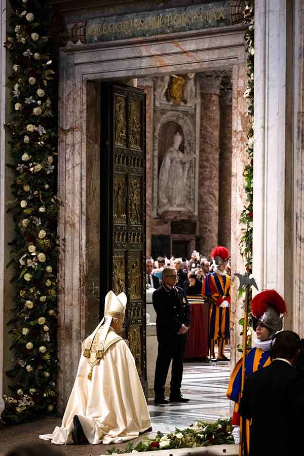 Torrential rains, looming deadline, don’t deter last-minute pilgrims January 7, 2026By Carol Glatz Catholic News Service Filed Under: Jubilee 2025, News, Vatican, World News VATICAN CITY (CNS) — With rain-slicked coats and rain-soaked feet, last-minute visitors did not let Rome’s infamous winter deluges and damp stop them from their goal: to pray and pass through to the Holy Door in St. Peter’s Basilica. With just a few hours to go before it closed to the public late Jan. 5, hundreds of pilgrims streamed nonstop into the basilica, pushing the final tally to well past 33 million people who visited the Vatican during the Holy Year that Pope Francis opened on Christmas Eve in 2024. Pope Leo XIV closes the Holy Door at St. Peter’s Basilica Jan. 6, 2026, at the Vatican, marking the official end of the Jubilee Year. (CNS photo/Vatican Media) “Avanti! No stop! Vámonos!” one basilica employee manning the Holy Door told the stream of people. It was clear by “looking at their eyes” who was coming to the door out of pious devotion, and who experienced it as just one more stop on a busy day, one guard told Catholic News Service. In fact, people often looked awestruck, jubilant or a bit dazed by the brilliant light bouncing off the white and gold interior of the church after weaving through the darkened square. The majority of visitors held their cell phones high, seeing the scene through the screen or taking selfies and posing as a family or a couple at the door. Those visitors who stopped to rest their heads against the depiction of the crucified Christ on the door or reverently touch the other panels were allowed to linger longer. And men and boys who forgot to pull off their hats or hoodies were given a stern look and a curt gesture by guards to remove their headwear. The only ones who looked tired by early evening were the children — many slung over a loved one’s shoulder or snuggled in a baby sling. Touching one of the bronze panels of the Holy Door became a moment of catechesis for some parents as they explained to their children how to make the sign of the cross or kiss one of the bas-relief depictions of Jesus. One father bent down to his small son, explaining how the door “will only be open again when you’re 28 years old!” calculating the next Holy Year to be in 2050. However, one is expected to be declared for the 2000th anniversary of the death and resurrection of Jesus Christ in 2033. The last official pilgrim group through the door was led by Archbishop Rino Fisichella, pro-prefect of the Dicastery for Evangelization, which organized the different Jubilees during the Holy Year. Pope Leo XIV kneels in prayer at the threshold of the Holy Door in St. Peter’s Basilica before solemnly closing it Jan. 6, 2026, marking the end of the Jubilee Year. (CNS photo/Pool, Cristian Gennari) He held the Jubilee cross as he walked through the Holy Door, leading members of the dicastery and scores of Jubilee volunteers who had endured the extremes of Rome’s weather all year, welcoming pilgrims at all four major basilicas and manning the special corridor from Castel Sant’Angelo to St. Peter’s Basilica. The volunteers wore their bright lime-green jackets and bibs, and some proudly held their country’s flag in their hands. No more pilgrim groups were allowed to leave from Piazza Pia after 5:30 p.m., and the last wave of individuals was let in after 6 p.m. By 6:40 p.m., the square was barricaded, and latecomers negotiated or pleaded with police to let them in. “I came from Finland,” said Anton, 22, an Orthodox Christian from Helsinki, who lingered at one barricade, musing about the “bad timing.” He and his friend told CNS that they had come to Rome to enjoy the food and sights, but Anton had wanted to go through the Holy Door as part of an act of spiritual purification and strengthen his desire to do something “for the greater good of God.” “Perhaps we could break in,” the young men joked when considering a contingency plan. One young mother parked a stroller along the perimeter of the square with her two small children and her father and mother. They had taken a two-hour train and subway ride from a small town just 11 miles away, and missed their chance to get through the door, too. “We wanted to take our picture,” she said, adding that they had managed to pass through the Holy Doors of St. Paul Outside the Walls and St. John Lateran, which had both closed in late December. Andrea, a man in his 60s, said he got to the square just when it closed. Traveling directly from Florence, he said he couldn’t come earlier “because of work.” He told CNS he had been looking forward to the spiritual significance of passing through the Holy Door and the experience of “a kind of purification.” “But I did make it through in 2000,” he said, recalling the very long lines to get to the door. “Let’s just hope (the graces from that year) will last me another 25 years.” Read More Vatican News As jubilee year ends, the faithful heed Pope Leo’s call to keep the church alive Pope Leo’s first Extraordinary Consistory: What to expect? Christians must resist allure of power, serve humanity, pope says at end of Holy Year Vatican sees record number of visitors during Jubilee year, officials say Pope Leo, bishops react to U.S. capture of Maduro with concern for Venezuela ‘Be open to what the Lord has in store for you,’ Pope Leo tells SEEK 2026 attendees Copyright © 2026 Catholic News Service/U.S. Conference of Catholic Bishops Print