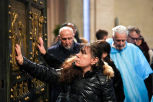 VATICAN CITY (CNS) — With rain-slicked coats and rain-soaked feet, last-minute visitors did not let Rome’s infamous winter deluges and damp stop them from their goal: to pray and pass through to the Holy Door in St. Peter’s Basilica.