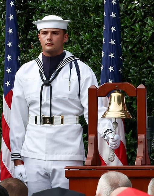 Trump marks 9/11 anniversary at Pentagon ceremony amid gloom of Charlie Kirk killing September 12, 2025By Kate Scanlon OSV News Filed Under: 9/11, Feature, News, World News WASHINGTON (OSV News) — President Donald Trump marked the 24th anniversary of the terror attacks of Sept. 11, 2001, at the Pentagon, prior to his scheduled trip to New York for a similar event, and in the shadow of the nation’s first high profile political assassination in decades. A serviceman rings a bell for each of the victims of the Sept. 11, 2001, attacks on the United States during a ceremony at the Pentagon in Arlington, Va., Sept. 11, 2025, marking the 24th anniversary of the attacks. (OSV News photo/Evelyn Hockstein, Reuters) Trump announced at the event that he would posthumously award conservative activist Charlie Kirk the Presidential Medal of Freedom, the nation’s highest civilian honor, after he was fatally shot by a sniper Sept. 10 during an event at Utah Valley University in Orem, Utah. As of the following afternoon, authorities were still searching for a person of interest in the shooting, the FBI’s Salt Lake City office said on X. Vice President JD Vance, who said in a social media post that he was a close friend of Kirk, cancelled his attendance at the New York ceremony to visit with Kirk’s family and escort his body back to Phoenix. On Sept. 11, 2001, 19 militants associated with the Islamic terror group al-Qaida hijacked airplanes for suicide attacks that left nearly 3,000 people dead in New York City, at the Pentagon just outside Washington, and in a field in rural Shanksville, Pennsylvania, where passengers thwarted the terrorists’ intention to strike another target in Washington, likely the U.S. Capitol. “On that fateful day, savage monsters attacked the very symbols of our civilization. Yet here in Virginia and in New York and in the skies over Pennsylvania, Americans did not hesitate,” Trump said during the event. “They stood on their feet, and they showed the world that we will never yield. We will never bend. We will never give up. And our great American flag will never, ever fail.” In New York City, al-Qaida hijackers rammed two commercial jetliners into the twin towers of the World Trade Center. At 8:46 a.m, American Airlines Flight 11 crashed into floors 93 through 99 of the North Tower. At 9:03 a.m. United Airlines Flight 175 struck the South Tower. Within two hours, both towers collapsed, killing 2,753 people in New York alone that day. “In the quarter of a century since those acts of mass murder, 9/11 family members have felt the weight of missed birthdays and empty bedrooms, journals left unfinished, and dreams left unfulfilled,” Trump said. “To every member that still feels a void in every day of your lives, the first lady and I unite with you in sorrow — and today, as one nation, we renew our sacred vow that we will never forget Sept. 11, 2001.” U.S. President Donald Trump delivers a speech during a ceremony at the Pentagon in Arlington, Va., Sept. 11, 2025, marking the 24th anniversary of the Sept. 11, 2001, attacks on the United States. (OSV News photo/Evelyn Hockstein, Reuters) House Speaker Mike Johnson, R-La., and House Minority Leader Hakeem Jeffries, D-N.Y., marked the occasion by laying a wreath together at the 9/11 Memorial in the U.S. Capitol. In a statement, Johnson also honored “the many thousands of those heroes who have lost their lives due to the illnesses they contracted from exposure to toxic dust at Ground Zero.” “America saw the face of evil; yet in our grief and anger, we revealed the best in ourselves. On this solemn anniversary, we take heart in knowing that even in that dark hour, the American people answered with all that is good, decent, and enduring in the human spirit,” he said. Jeffries shared a photo of the pair on social media, adding, “We will never forget the lives lost during the terrorist attack on September 11th. And will always honor the heroism of our brave first responders.” In a social media post, the U.S. bishops’ conference marked the anniversary by sharing a prayer the late Pope Benedict XVI said during a 2008 visit to Ground Zero. Read More World News NCYC relics chapel offers attendees a chance to pray in presence of saints Extension’s Spirit of Francis Award recipient honored for advancing community health Though Nicaea is a ruin, its Creed stands and unites Christians, pope says A little leaven can do great things, pope tells Turkey’s Catholics Diocese of Hong Kong mourns over 100 victims of devastating apartment complex fire Catholic filmmaker investigates UFO mysteries at the Vatican Copyright © 2025 OSV News Print