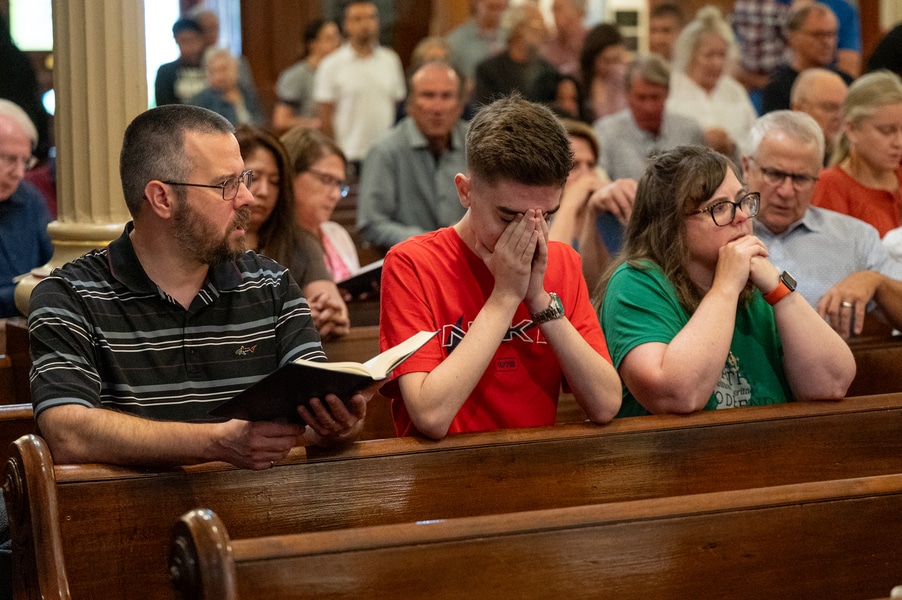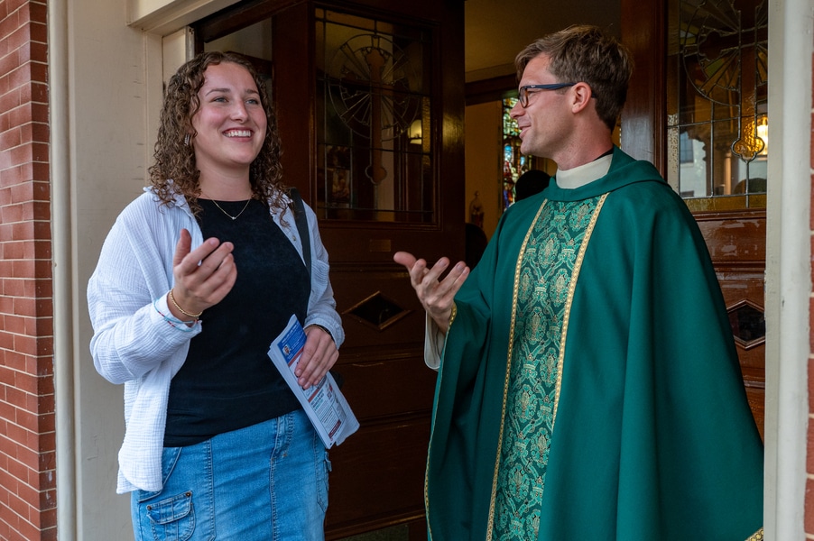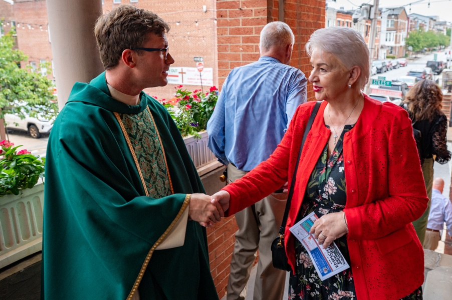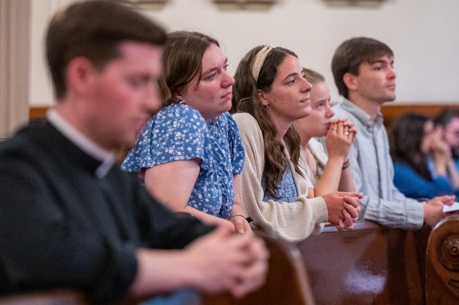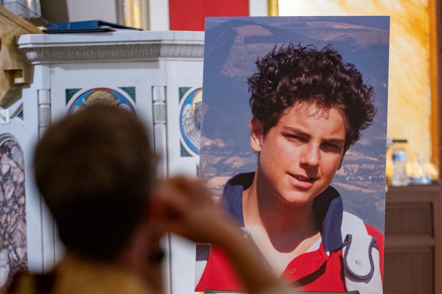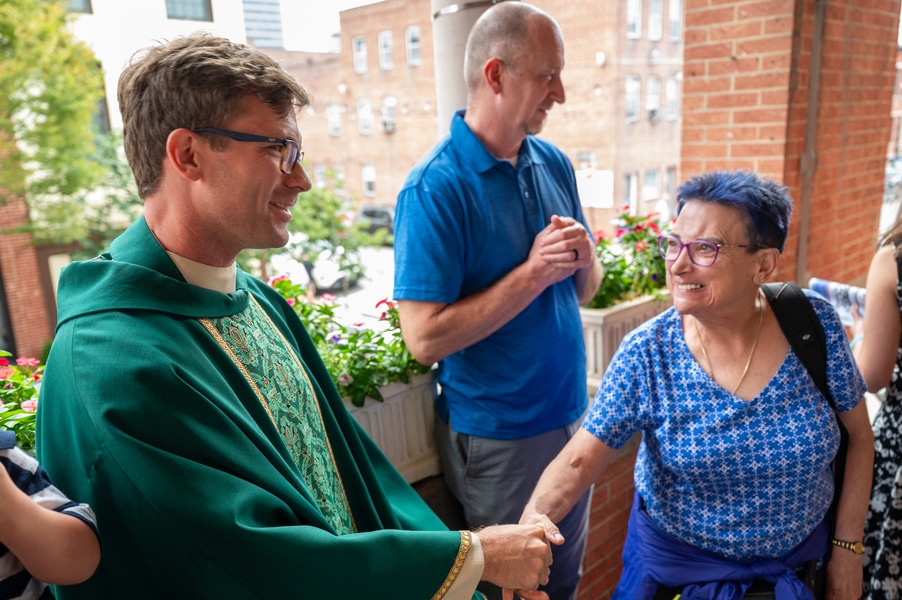 Two new saints celebrated by Baltimore Catholics September 8, 2025By Katie V. Jones Catholic Review Filed Under: Feature, Local News, News, Saints Baltimore Catholics joined the worldwide Catholic community in honoring two young saints this weekend as Carlo Acutis, a 15-year-old computer whiz who died in 2006, and Pier Giorgio Frassati, a 24-year-old rock climber who died in 1925, were canonized Sept. 7 by Pope Leo XIV in St. Peter’s Square. Father Evan Ponton, pastor of St. Leo the Great Roman Catholic Church in Little Italy, blesses the monstrance with incense to commence eucharistic adoration following their Sept. 6 parish Mass, which was dedicated St. Carlo Acutis, left, and St. Pier Giorgio Frassati. The pair were canonized by Pope Leo XIV in Rome on Sept. 7. (Kevin J. Parks/CR Staff) Both faith-filled and handsome, the two saints were celebrated across the Archdiocese of Baltimore with special Masses, dinners and opportunities for veneration. In Baltimore’s Little Italy, Father Evan Ponton, pastor of St. Leo the Great, welcomed more than 100 people to an evening Mass Sept. 6, followed by eucharistic adoration and an Italian dinner featuring Father Leo Patalinghug’s Plating Grace food truck. With photos of the saints prominently displayed at the front of the church, Father Ponton admitted in his homily that he had been praying to Carlo Acutis many times in recent months for help with computers – from fixing the Wi-Fi to keeping the printer working. “We are all hardwired to run the ‘Christ program,’” he said. “All of us need a bit of conversion or reprogramming at times to become compatible with Christ,” Father Ponton said. “Your identity in Christ can never be stolen. It is already created for you. It was given to you. The saints, like Carlo and Pier, show us true authenticity. They show us the program and the process to becoming truly ourselves.” During adoration, music filled the church while people prayed to the new saints and confessions were heard. Students from Towson University meet with Wanda Gawronska, Saint Pier Giorgio Frassati’s niece, in Rome, August 2025. (Courtesy photo) “It is such a joyous occasion to be able to bring my children to this celebration for saints who are very relatable to their young lives,” said Christina Tine, a parishioner of St. John the Evangelist in Severna Park, as she waited in line at the Plating Grace food truck with her two daughters. The Schneider family – Mark, Kathleen and son Josh – parishioners at St. Margaret in Bel Air, traveled to Italy in August on a pilgrimage that took them to the mountains where St. Pier Giorgio hiked, to his hometown of Turin, and to Rome, where his body was on display. They had hoped to attend his canonization Aug. 3, but the ceremony was rescheduled following the death of Pope Francis in April. “I saw this and thought, coming here makes it full circle,” Mark said. Students from Towson University’s Newman Center also traveled to Italy this summer. Four of them, along with campus minister Brian Rhude, met Wanda Gawronska, St. Pier Giorgio’s niece and a promoter for his canonization. A portrait of St. Pier Giorgio Frassati stands below a statue of Jesus, while Christopher Rhodovi, director of music at St. Leo the Great Roman Catholic Church, leads parishioners in music for the late-afternoon Mass Sept. 6 in Little Italy. The Mass was dedicated to both Frassati and Saint Carlo Acutis, who were canonized by Pope Leo XIV in Rome Sept. 7. (Kevin J. Parks/CR Staff) “Just being in the room, just seeing her, it was very, very beautiful,” said Lucia Gurri, 21, a junior at Towson. “She is very quick, very sharp. It was really lovely meeting her. It makes you think these people are so real. These people were like you and me.” Mackenzie Gorczyca, 19, a sophomore, commented on all the photos of St. Pier Giorgio in Gawronska’s apartment, and the stories she told. “She was so proud to be his niece. She just wanted to share all the amazing things about him,” Gorczyca said. “You could see how Christ worked in his life through Wanda.” Gurri also admired St. Pier Giorgio’s courage. “He was someone who wasn’t afraid to totally submit to the Lord’s calling to him,” Gorczyca said. In Crofton, St. Elizabeth Ann Seton displayed its first-class relic of St. Carlo during weekend Masses. The lock of hair was given to the church after parishioners petitioned for a relic following a previous loan for a display about St. Carlo, according to Deacon Michael Fitzpatrick. As relics cannot be mailed, a visiting seminarian from the Diocese of Arlington transported it to the parish. “That’s how it happened,” Deacon Fitzpatrick said. “I didn’t realize you had to petition for a relic. I knew they were hard to come by.” St. Elizabeth Ann Seton’s newly formed youth group was able to view the relic, Deacon Fitzpatrick said. “We got to talking about relics and how Carlo’s love of the Eucharist led him to this great thing he did for us, a website about the Eucharist,” Deacon Michael said. “To have teenagers hear it and get it and say ‘Wow,’ I think we make him a ‘go-to saint.’” Email Katie V. Jones at kjones@CatholicReview.org To view more photos of Baltimore-area Catholics celebrating the canonizations of two new saints, click through the slide show below: St. Leo the Great Roman Catholic Church, Little Italy, Sept. 6 parish Mass, dedicated St. Carlo Acutis, and St. Pier Giorgio Frassati. The pair were canonized by Pope Leo XIV in Rome on Sept. 7. (Kevin J. Parks/CR Staff) St. Leo the Great Roman Catholic Church, Little Italy, Sept. 6 parish Mass, dedicated St. Carlo Acutis, and St. Pier Giorgio Frassati. The pair were canonized by Pope Leo XIV in Rome on Sept. 7. (Kevin J. Parks/CR Staff) During the Saturday afternoon Mass on Sept. 6, Father Evan Ponton, pastor of St. Leo the Great Roman Catholic Church in Little Italy, and Father Thomas P. O’Donnell,