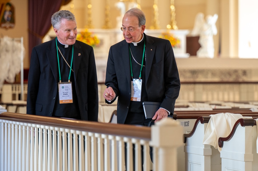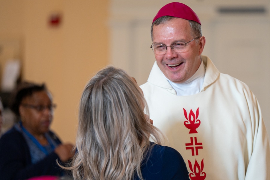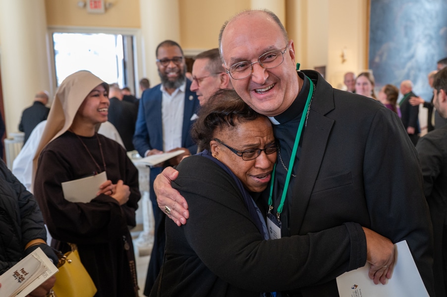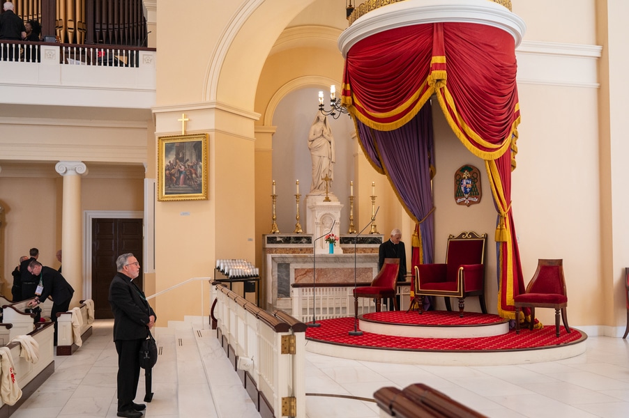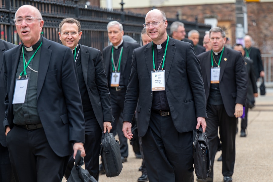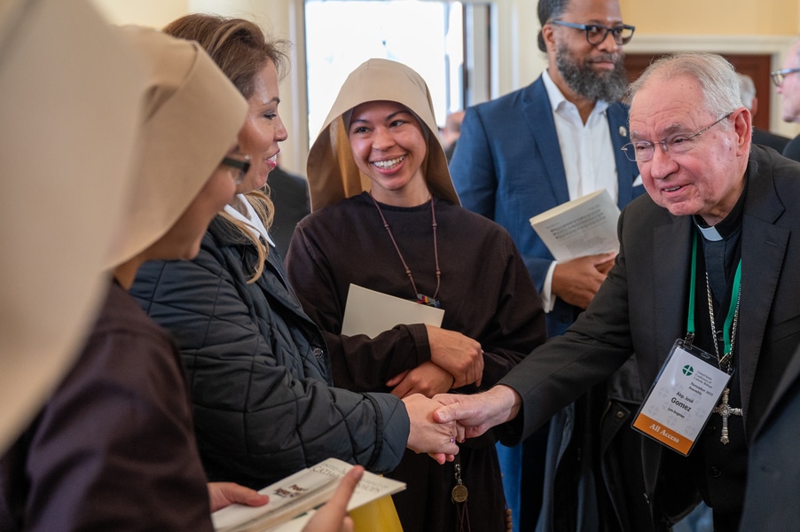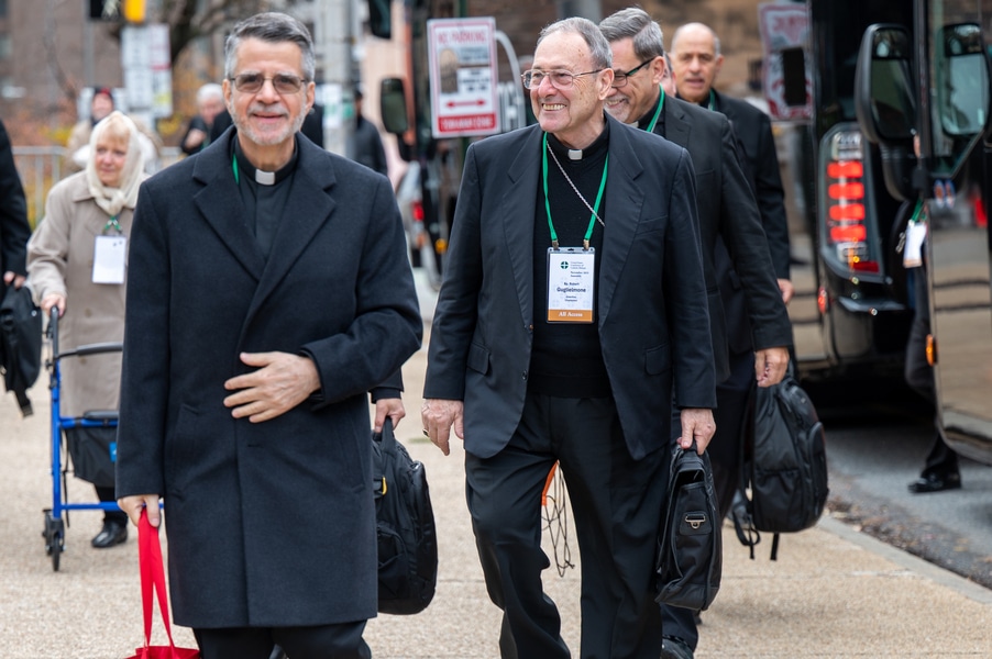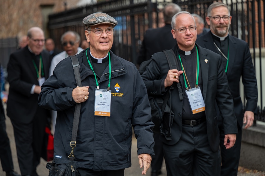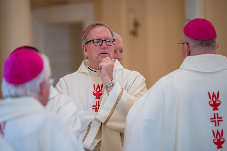 U.S. bishops celebrate Mass to ‘beg the Holy Spirit to inspire’ November 10, 2025By Katie V. Jones Catholic Review Filed Under: Bishops, Local News, News En Español Arriving by motor coaches, more than 320 bishops from across the United States streamed into the Basilica of the National Shrine of the Assumption of the Blessed Virgin Mary in Baltimore Nov. 10, where they donned matching vestments to celebrate Mass on the first day of their annual fall plenary assembly. Archbishop Gregory Hartmayer of the Diocese of Atlanta, left, walks alongside his fellow bishops as they enter the Basilica of the National Shrine of the Assumption of the Blessed Virgin Mary. (Kevin J. Parks/CR Staff) “A very, very warm welcome to everyone this morning,” Baltimore Archbishop William E. Lori, vice president of the U.S. Conference of Catholic Bishops, said in his opening remarks. “This is a beautiful church, an ancient church. It is a historic church, but I think the most beautiful thing about this church is that it is a living, breathing community of mostly young adults who love the Lord.” In his homily, Archbishop Timothy P. Broglio, USCCB president and archbishop of the Archdiocese for the Military Services, USA, noted that at the beginning of the sessions, the bishops “beg the Holy Spirit to inspire” their deliberations and “renew their duty to be servants of truth.” Archbishop William E. Lori of Baltimore welcomes his fellow bishops to the Basilica of the National Shrine of the Assumption of the Blessed Virgin Mary. (Kevin J. Parks/CR Staff) He spoke of the many distractions people face in the world today. He told of meeting a young airman at Fort Meade who asked him “how to be a saint” and where he could find the courage to live by his convictions of faith. “I confess that I was moved by the sincerity of his question,” Archbishop Broglio said. “For me, it was a moment of hope. A young man … seeking ways to deepen his grasp on truth.” The way forward tends to be self indulgent, he said. The Gospel, he said, “does urge us to be demanding of ourselves” but asks us to “be eager to forgive the other when he or she asks for forgiveness. Help us listen.” An estimated 320 bishops from across the United States attend the opening Mass for the 2025 fall plenary. (Kevin J. Parks/CR Staff) The priority in the house of prayer is the worship of God, he said, and “not the motivation of other gods.” During the assembly, which runs through Nov. 13, the bishops are expected to talk about numerous issues, hold elections and discuss policies. Auxiliary Bishop James Massa, of the Diocese of Brooklyn, noted that the first day of the conference was a time for reflection with Mass as well as confessions and adoration scheduled to allow the bishops to quiet their own struggles in order to be open and willing. “Immigration is top on the agenda,” Bishop Massa said. “It is a time of transition. We are electing a new president and vice president. We need the grace of the Holy Spirit.” Bishop Bruce A. Lewandowski, C.Ss.R., former auxiliary bishop of Baltimore and now the leader of the Diocese of Providence, R.I., is warmly greeted by Adrienne Curry, director of the Archdiocese of Baltimore’s Office of Black Catholic Ministries. (Kevin J. Parks/CR Staff) “The meeting in Baltimore each year is a very important one,” said Bishop Robert M. Pipta of the Byzantine Catholic Eparchy of Parma. “The Eastern Catholic bishops are very much a part of this. We learn. We pray for one another. We really try to face some of the very real challenges in our country right now when it comes to not only our people, but all people of good well.” “When you see the church in diversity and unity, and Christ is proclaimed East and West, it’s beautiful,” Bishop Gregory Mansour, of the Eparchy of St. Maron of Brooklyn, said. For Diocese of Providence Bishop Bruce A. Lewandowski, C.Ss.R., the conference was a homecoming as he was previously an auxiliary bishop of Baltimore until his appointment to Rhode Island in May 2025. “The thing I’m looking forward to most about the conference this time around is being in Baltimore and seeing the people I love,” he said, between hugs and well wishes. Email Katie V. Jones at kjones@CatholicReview.org To view more photos from this event, click through the slideshow below: Opening Mass at the Basilica of the National Shrine of the Assumption of the Blessed Virgin Mary for the fall plenary of the U.S. Conference of Catholic Bishops Nov. 10 in Baltimore. (Kevin J. Parks/CR Staff) Opening Mass at the Basilica of the National Shrine of the Assumption of the Blessed Virgin Mary for the fall plenary of the U.S. Conference of Catholic Bishops Nov. 10 in Baltimore. (Kevin J. Parks/CR Staff) Opening Mass at the Basilica of the National Shrine of the Assumption of the Blessed Virgin Mary for the fall plenary of the U.S. Conference of Catholic Bishops Nov. 10 in Baltimore. (Kevin J. Parks/CR Staff) Opening Mass at the Basilica of the National Shrine of the Assumption of the Blessed Virgin Mary for the fall plenary of the U.S. Conference of Catholic Bishops Nov. 10 in Baltimore. (Kevin J. Parks/CR Staff) Opening Mass at the Basilica of the National Shrine of the Assumption of the Blessed Virgin Mary for the fall plenary of the U.S. Conference of Catholic Bishops Nov. 10 in Baltimore. (Kevin J. Parks/CR Staff) Opening Mass at the Basilica of the National Shrine of the Assumption of the Blessed Virgin Mary for the fall plenary of the U.S. Conference of Catholic Bishops Nov. 10 in Baltimore. (Kevin J. Parks/CR Staff) Opening Mass at the Basilica of the National Shrine of the Assumption of the Blessed Virgin Mary for the fall plenary of the U.S. Conference of Catholic Bishops Nov. 10 in Baltimore. (Kevin J. Parks/CR Staff) Opening Mass at the Basilica of the National Shrine of the Assumption of the Blessed Virgin Mary for the fall plenary of the U.S. Conference of Cat