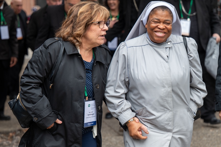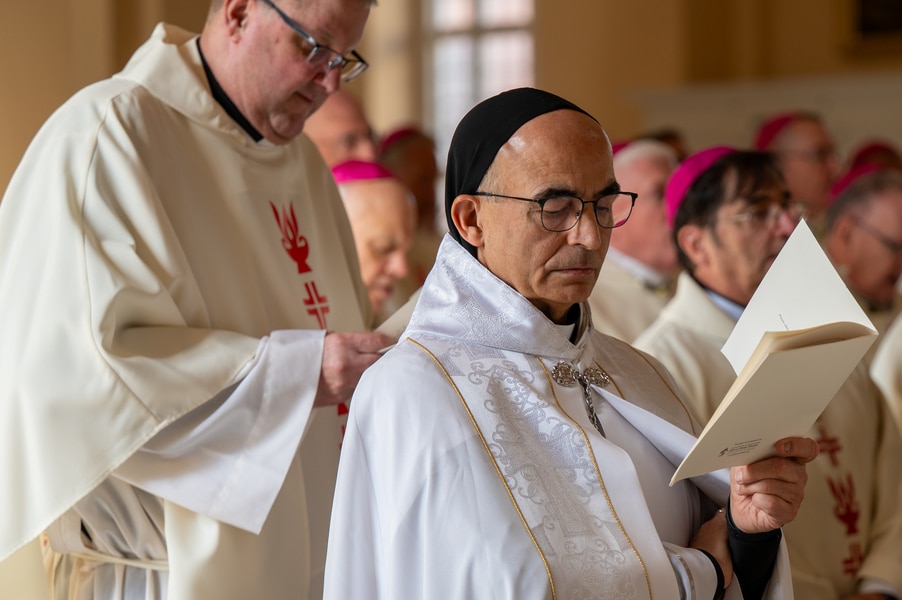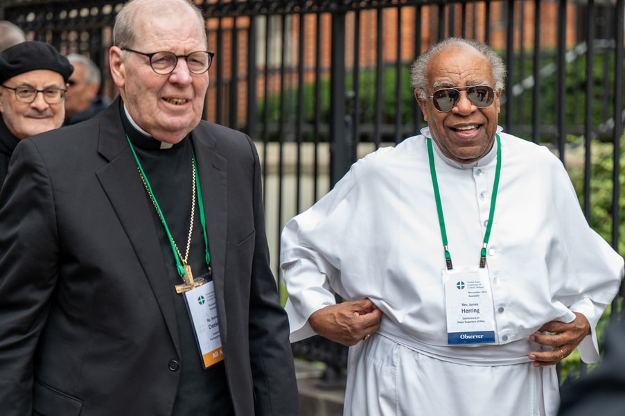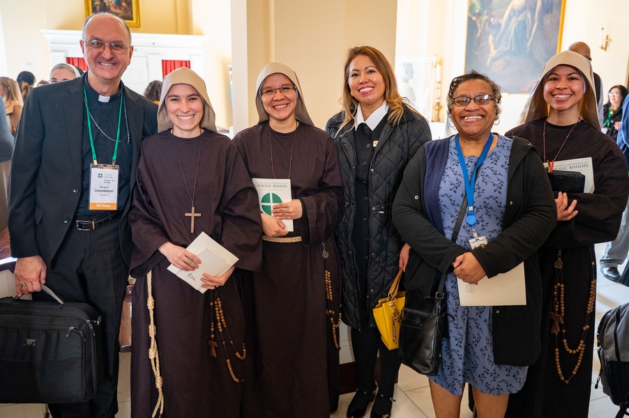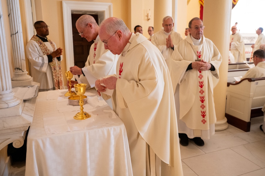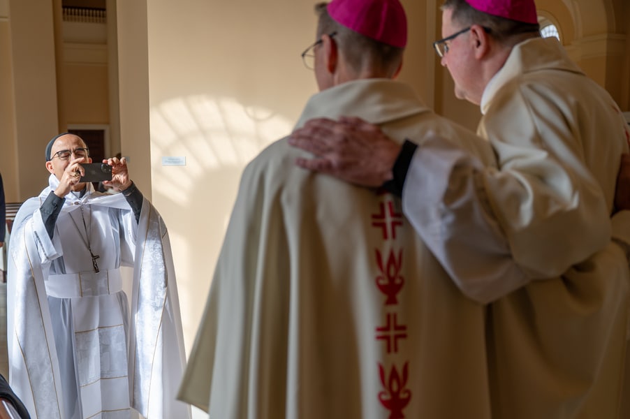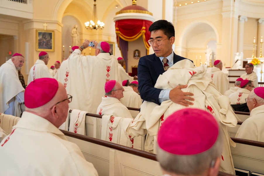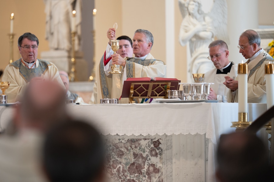 U.S. bishops celebrate Mass to ‘beg the Holy Spirit to inspire’ November 10, 2025By Katie V. Jones Catholic Review Filed Under: Bishops, Local News, News En Español Arriving by motor coaches, more than 320 bishops from across the United States streamed into the Basilica of the National Shrine of the Assumption of the Blessed Virgin Mary in Baltimore Nov. 10, where they donned matching vestments to celebrate Mass on the first day of their annual fall plenary assembly. Archbishop Gregory Hartmayer of the Diocese of Atlanta, left, walks alongside his fellow bishops as they enter the Basilica of the National Shrine of the Assumption of the Blessed Virgin Mary. (Kevin J. Parks/CR Staff) “A very, very warm welcome to everyone this morning,” Baltimore Archbishop William E. Lori, vice president of the U.S. Conference of Catholic Bishops, said in his opening remarks. “This is a beautiful church, an ancient church. It is a historic church, but I think the most beautiful thing about this church is that it is a living, breathing community of mostly young adults who love the Lord.” In his homily, Archbishop Timothy P. Broglio, USCCB president and archbishop of the Archdiocese for the Military Services, USA, noted that at the beginning of the sessions, the bishops “beg the Holy Spirit to inspire” their deliberations and “renew their duty to be servants of truth.” Archbishop William E. Lori of Baltimore welcomes his fellow bishops to the Basilica of the National Shrine of the Assumption of the Blessed Virgin Mary. (Kevin J. Parks/CR Staff) He spoke of the many distractions people face in the world today. He told of meeting a young airman at Fort Meade who asked him “how to be a saint” and where he could find the courage to live by his convictions of faith. “I confess that I was moved by the sincerity of his question,” Archbishop Broglio said. “For me, it was a moment of hope. A young man … seeking ways to deepen his grasp on truth.” The way forward tends to be self indulgent, he said. The Gospel, he said, “does urge us to be demanding of ourselves” but asks us to “be eager to forgive the other when he or she asks for forgiveness. Help us listen.” An estimated 320 bishops from across the United States attend the opening Mass for the 2025 fall plenary. (Kevin J. Parks/CR Staff) The priority in the house of prayer is the worship of God, he said, and “not the motivation of other gods.” During the assembly, which runs through Nov. 13, the bishops are expected to talk about numerous issues, hold elections and discuss policies. Auxiliary Bishop James Massa, of the Diocese of Brooklyn, noted that the first day of the conference was a time for reflection with Mass as well as confessions and adoration scheduled to allow the bishops to quiet their own struggles in order to be open and willing. “Immigration is top on the agenda,” Bishop Massa said. “It is a time of transition. We are electing a new president and vice president. We need the grace of the Holy Spirit.” Bishop Bruce A. Lewandowski, C.Ss.R., former auxiliary bishop of Baltimore and now the leader of the Diocese of Providence, R.I., is warmly greeted by Adrienne Curry, director of the Archdiocese of Baltimore’s Office of Black Catholic Ministries. (Kevin J. Parks/CR Staff) “The meeting in Baltimore each year is a very important one,” said Bishop Robert M. Pipta of the Byzantine Catholic Eparchy of Parma. “The Eastern Catholic bishops are very much a part of this. We learn. We pray for one another. We really try to face some of the very real challenges in our country right now when it comes to not only our people, but all people of good well.” “When you see the church in diversity and unity, and Christ is proclaimed East and West, it’s beautiful,” Bishop Gregory Mansour, of the Eparchy of St. Maron of Brooklyn, said. For Diocese of Providence Bishop Bruce A. Lewandowski, C.Ss.R., the conference was a homecoming as he was previously an auxiliary bishop of Baltimore until his appointment to Rhode Island in May 2025. “The thing I’m looking forward to most about the conference this time around is being in Baltimore and seeing the people I love,” he said, between hugs and well wishes. Email Katie V. Jones at kjones@CatholicReview.org To view more photos from this event, click through the slideshow below: Opening Mass at the Basilica of the National Shrine of the Assumption of the Blessed Virgin Mary for the fall plenary of the U.S. Conference of Catholic Bishops Nov. 10 in Baltimore. (Kevin J. Parks/CR Staff) Opening Mass at the Basilica of the National Shrine of the Assumption of the Blessed Virgin Mary for the fall plenary of the U.S. Conference of Catholic Bishops Nov. 10 in Baltimore. (Kevin J. Parks/CR Staff) Opening Mass at the Basilica of the National Shrine of the Assumption of the Blessed Virgin Mary for the fall plenary of the U.S. Conference of Catholic Bishops Nov. 10 in Baltimore. (Kevin J. Parks/CR Staff) Opening Mass at the Basilica of the National Shrine of the Assumption of the Blessed Virgin Mary for the fall plenary of the U.S. Conference of Catholic Bishops Nov. 10 in Baltimore. (Kevin J. Parks/CR Staff) Opening Mass at the Basilica of the National Shrine of the Assumption of the Blessed Virgin Mary for the fall plenary of the U.S. Conference of Catholic Bishops Nov. 10 in Baltimore. (Kevin J. Parks/CR Staff) Opening Mass at the Basilica of the National Shrine of the Assumption of the Blessed Virgin Mary for the fall plenary of the U.S. Conference of Catholic Bishops Nov. 10 in Baltimore. (Kevin J. Parks/CR Staff) Opening Mass at the Basilica of the National Shrine of the Assumption of the Blessed Virgin Mary for the fall plenary of the U.S. Conference of Catholic Bishops Nov. 10 in Baltimore. (Kevin J. Parks/CR Staff) Opening Mass at the Basilica of the National Shrine of the Assumption of the Blessed Virgin Mary for the fall plenary of the U.S. Conference of Cat