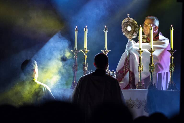 USCCB calls for adoration hours, works of mercy to celebrate America’s 250th anniversary February 18, 2026By OSV News OSV News Filed Under: Bishops, Eucharist, Feature, News, World News WASHINGTON (OSV News) — As the U.S. prepares to commemorate the 250th anniversary of the signing of the Declaration of Independence on July 4, the U.S. Conference of Catholic Bishops has encouraged Catholics to participate in initiatives including a collective 250 Hours of Adoration and 250 Works of Mercy. To celebrate the occasion, “America 250,” the initiatives encourage prayer for the unity and healing of the U.S., according to a resource guide the USCCB has published. The conference previously said the U.S. bishops will consecrate the United States to the Sacred Heart of Jesus in June. In his encyclical “Dilexit Nos,” Pope Francis “instructs us to ‘nourish our lives with the strength of the Eucharist’ in Holy Communion and Adoration, so that we might understand Christ’s love for all more deeply and live out this love ourselves,” the guide stated. “Our contemplation of the Sacred Heart leads us deeper into the mystery of our salvation and deeper into our love for Christ found in the faces of our sisters and brothers — especially those most in need.” The guide said parishes can participate in 250 Hours of Adoration by offering a Holy Hour on a weekly or monthly basis leading up to the nation’s July 4 anniversary. It noted that this could include continuing current practices or inviting new people to join. It suggested similar efforts to carry out 250 Works of Mercy. It includes resources for Holy Hours for life, peace, marriage, religious liberty, vocations, an end to racism, as well as a Sacred Heart Holy Hour. “Consider hosting a holy hour or series of holy hours at your parish using the templates provided. … You may have other ways to invite members of your community to spend some time in prayer for our country with Jesus truly present in the Blessed Sacrament,” the guide said. “To prepare for the Consecration of the United States to the Sacred Heart, parishes can also incorporate the Litany of the Sacred Heart of Jesus into their Holy Hour.” As examples of works of mercy, the guide encouraged parishes to find ways to assist women who are facing a crisis pregnancy; donate to food pantries and clothing closets, and community beautification programs; raise money for an overseas development project; sponsor a refugee family; tutor children; or volunteer at homeless shelters. “The seven Corporal Works of Mercy come to us directly from the Scriptures in the Gospel of Matthew,” the guide said. “Rooted in our lives of faith, the actions that Jesus calls us to in feeding the hungry, giving drink to the thirsty, sheltering the homeless, visiting the sick and imprisoned, burying the dead, and giving alms are central elements of our Catholic identity.” It quotes from Pope Leo XIV’s apostolic exhortation “Dilexi Te,” which itself draws on Pope Francis’ “Dilexit Nos”: “As we contemplate Christ’s love, ‘we too are inspired to be more attentive to the sufferings and needs of others, and confirmed in our efforts to share in his work of liberation as instruments for the spread of his love.'” Read More Eucharist Mount 2000 attracts more than 1,100 for eucharistic retreat Pope expected to visit Australia for 2028 International Eucharistic Congress, bishop says Survey: National Eucharistic Revival rekindled faith and outreach, but challenges remain National Eucharistic Pilgrimage is back in 2026 — with a patriotic twist and a stop in Baltimore In pastoral on Communion norms, Bishop Martin emphasizes Eucharist is communal act of worship Discovering the Eucharist at Bethlehem Copyright © 2026 OSV News Print
