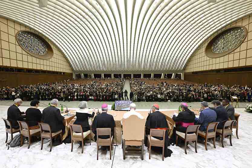 Vatican synod study group proposes creation of pontifical commission for new technologies March 4, 2026By Courtney Mares Catholic News Service Filed Under: News, Synodality, Vatican, World News ROME (OSV News) — A Synod on Synodality study group has recommended the creation of a new “Pontifical Commission for Digital Culture and New Technologies” in the first of 15 synod study group reports expected in the coming weeks. The Vatican published the first two final reports from its Synod on Synodality study groups on March 3. The first report contains recommendations on navigating the Church’s presence in digital spaces, including a proposal for a Vatican office or commission to monitor emerging theological, pastoral and canonical questions; prepare guidelines and training strategies for bishops, priests, religious and laypeople; and support bishops’ conferences in integrating digital mission into their pastoral plans. Pope Leo XIV, with regional representatives of synod teams, listens to and answers questions from participants in the Jubilee of Synodal Teams and Participatory Bodies in the Vatican audience hall Oct. 24, 2025. The final reports for two Synod study groups on formation for the priesthood and digital media were released on March 3, 2026. (CNS photo/Vatican Media) The second report focuses on guidelines for the formation of future priests and includes a call for more women to play a role in aiding the formation of seminarians for the priesthood. The report also lists 26 real world examples of “best practices” from seminaries around the world. In one of the examples, the report points to how almost all seminaries in France now include at least one woman on their seminary council with voting rights, after a 2021 directive from the country’s bishops. In one French seminary, a married couple, a marriage counselor and her retired husband, married 39 years with six children, lives in the seminary as an integral part of its formation team alongside six priests. Pope Leo XIV directed that the study group reports be made public, according to the General Secretariat of the Synod, “in order to share with the entire People of God the fruit of the reflection and discernment undertaken, thereby giving concrete expression to one of the essential characteristics of the synodal Church: transparency and accountability.” Cardinal Mario Grech, the secretary general of the Synod of Bishops, noted the final reports “are to be understood as working documents, a point of departure rather than arrival,” but said they “already contain valuable indications … from which local Churches and various ecclesial realities may draw inspiration from this very moment.” The General Secretariat of the Synod will publish 13 more study group final reports, according to its website, with the next batch expected March 10. The study groups were established by Pope Francis following the first session of the Synod on Synodality in October 2023. Twelve groups were originally formed to examine issues raised at that assembly, including women’s participation in the Church, the role of papal nuncios and the liturgy in a synodal perspective. The groups, composed of cardinals, bishops, priests and lay experts from both inside and outside the Vatican, had originally been asked to submit their conclusions by June 2025. After the death of Pope Francis and the election of Pope Leo XIV last year, the new pope extended the deadline, requesting final reports be delivered “insofar as possible” by Dec. 31, 2025. The proposals drawn from all of the final reports will be submitted to Pope Leo XIV, who will evaluate and may approve them, the secretariat said. The 26-page final report from the study group on the Church’s mission in the digital environment provided recommendations both at the diocesan level and for the bishops’ conferences and Roman Curia to better serve the needs of people online. The report reflected on feedback gathered from Catholics throughout the global synod process, citing clergy who said they felt “ill-equipped to navigate digital spaces.” The report called on appropriate Vatican bodies to study potential canonical adaptations to accommodate what it termed “supraterritorial digital realities,” acknowledging that online ministry often goes beyond traditional geographic diocesan boundaries. The group noted that “much more consultation and discernment remains to be done regarding jurisdictional issues.” Additional Vatican-level proposals included developing guidelines on digital risks such as polarization and manipulation, fostering international networks of those engaged in digital mission, and creating a Church-wide digital resource hub. The group’s recommendations emphasized that digital spaces represent genuine terrain for evangelization. Local churches, it said, should affirm digital culture as “a real space for mission, where true human relationships occur.” The report also cautioned that “mainstream digital platforms are not neutral but have algorithms that may hinder the spread of positive messages.” The second report, a 24-page document, provided guidelines and recommendations for how seminarians are formed, including closer immersion in parish life, the inclusion of women in the process of formation, and greater lay involvement in decisions about priestly candidates. Rather than issuing a wholesale revision of the 2016 Ratio Fundamentalis Institutionis Sacerdotalis, a document from the Congregation for the Clergy on priestly formation, which the synod secretariat said the group judged as “still valid in its fundamental principles,” the study group produced a guiding document for its implementation in a “missionary synodal key.” Among its key guidelines, the report called for priestly formation to be immersed in the life of the Christian community, with the possibility of alternating traditional seminary residence with periods living in parish 