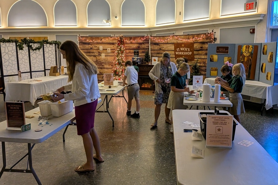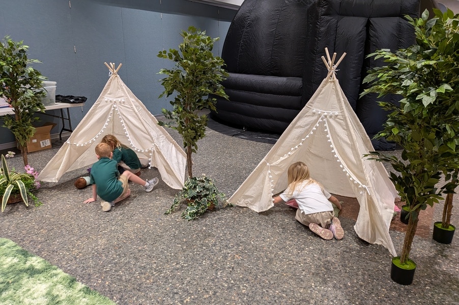Westminster parish ignites wonder in youth September 18, 2025By Katie V. Jones Catholic Review Filed Under: Feature, Local News, News, Schools, Youth Ministry The Portico at St. John in Westminster buzzed with excitement Sept. 12-14 as the parish hosted its pop-up Wonder Station, a children’s museum designed to inspire awe, playfulness and imagination. Featuring six themed “Wonder Zones” – from Glow Grove to Whispering Pines and St. Nick’s Workshop – the interactive exhibit invited families to explore faith in a welcoming, joyful environment. Students from St. John Catholic School in Westminster explore the Wonder Station pop-up in the church’s Portico Sept. 12. (Katie V. Jones/CR Staff) “We wanted to make this open to people interested in God … and not feel preachy,” said Kenn deMoll, St. John’s director of formation and innovation. “We want people to come in, experience it and have fun.” Students from St. John School were the first to step inside on Sept. 12, exploring each zone by grade. Excited shouts filled the air as children ran through a dark maze, toasted marshmallows over a toy campfire and discovered new ways to play. “It’s amazing what the children are able to experience and the hands-on activities,” said Tracie Amey, a first-grade teaching assistant. “They are loving it.” Kindergarten teacher Rochelle O’Connor agreed “We’re so lucky we got to check it out,” she said. “It’s perfect for the kids.” A vision years in the making The Wonder Station was three years in the making. St. John received a $50,000 grant through the Archdiocese of Baltimore’s innovation challenge. Initially envisioned as a St. Nicholas-themed display, the project expanded as more people offered ideas. “We had all these ideas and narrowed it down to six,” deMoll said. “We are testing all the ideas for the first time. So many different people troubleshooted and imagined this.” Students from St. John Catholic School in Westminster explore the Wonder Station pop-up tee pees in the church’s Portico Sept. 12. (Katie V. Jones/CR Staff) Over the weekend, children explored: Whispering Pines – “When life feels too big, remember: God is bigger.” A camping-themed space with tents, toy campfire and an inflatable planetarium telling the story of creation. Outfitters and Identity Emporium – “Every role matters. You were made with purpose and are loved just as you are.” A dress-up area filled with colorful costumes. Glow Grove – “Even in darkness, God brings light.” A neon-lit zone with mini golf and games. St. Nick’s Workshop – “Joy grows when we give.” Craft stations where children made ornaments and learned about St. Nicholas. Created to Create – “God made you on purpose, to create with love, beauty and truth just like Him.” Hands-on activities, including a virtual reality sandbox. Maze Quest – “You may be lost but God isn’t.” Two mazes – one made of straw, the other under a black tent. St. John in Westminster’s Wonder Station pop-up drew 561 visitors in three days. (Katie V. Jones/CR Staff) Children were encouraged to take home some of their creations, such as ornaments. In Whispering Pines, a wishing well invited them to write their worries on rocks and drop them in, symbolically entrusting their concerns to God. DeMoll noted the fears were both ordinary and profound: “homework, bees, getting hit by a baseball,” but also “the future, death and parents who were sick.” “It’s a good reminder to me that even little kids experience big moments in life and need God’s help with it,” deMoll said. The pop-up drew an “amazing turnout,” deMoll said, with 561 visitors over the three-day weekend. Organizers now hope to secure a permanent location, ideally on Westminster’s Main Street. “We need to approach different investors,” deMoll said. “We’re pretty excited about it.” Email Katie V. Jones at kjones@CatholicReview.org Read More Local News Calvert Hall holds off Loyola Blakefield to claim a 28-24 victory in the 105th Turkey Bowl Tears and prayers greet St. Thérèse relics in Towson Mercy surgeons help residents get back on their feet at Helping Up Mission Maryland pilgrims bring energy and joy to NCYC 2025 Governor Moore visits Our Daily Bread to thank food security partners Relic of St. Francis of Assisi coming to Ellicott City Copyright © 2025 Catholic Review Media Print