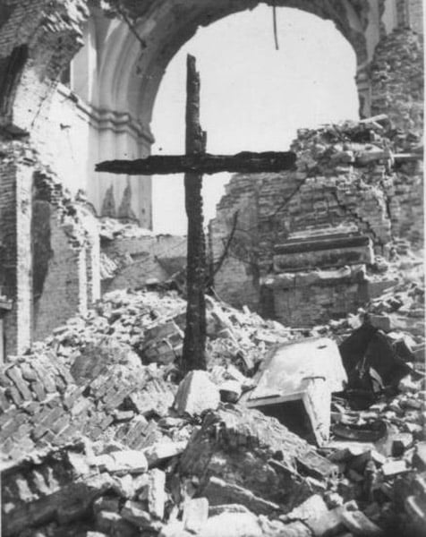 When nuns perished during adoration in wartime Warsaw, white doves rose into sky August 8, 2025By Alina Petrowa-Wasilewicz OSV News Filed Under: News, Religious Freedom, Saints, World News WARSAW, Poland (OSV News) — “Apparently, it is God’s will that we die here,” said Mother Janina Byszewska, the superior of the Benedictine Nuns of the Most Blessed Sacrament community, which found itself in the midst of the fighting of the Warsaw Uprising in August 1944. Shortly thereafter, 34 nuns, four priests and a thousand civilians died under the rubble of their own convent. The convent of the Benedictine Nuns of the Most Blessed Sacrament and the Church of St. Casimir in Warsaw, Poland, are seen in an undated photograph before the buildings were destroyed during the Second World War by German bombing amid the Warsaw Uprising, burying 34 sisters, four priests and a thousand civilians in the rubble on Aug. 31, 1944. (OSV News photo/courtesy Nuns of the Most Blessed Sacrament) “People ask us if our sisters have been beatified,” Mother Maria Blandyna, the current superior of the community, told OSV News. “No, because it is extremely difficult. All the documents, the monastery chronicle, were destroyed,” she said. The wartime story of the heroic nuns from Warsaw begins during the uprising in August 1944, when their convent became a site of both faith and tragedy. On Aug. 1, 1944, the Polish underground Home Army launched the uprising against the German occupiers, who had controlled the country since 1939. The resistance hoped to liberate the city before the Soviet Red Army arrived. Fierce street fighting soon surrounded the Benedictine convent. On Aug. 6, the feast of the Transfiguration, one of the commanders asked the sisters to open the convent for use as a military base. The date is considered the beginning of their martyrdom that the sisters were well aware of. The Benedictine convent has been founded by Queen Maria Sobieska as a votive offering of thanksgiving for the victory of her husband, King Jan III Sobieski, who in 1683 fought a decisive battle for Europe against the Turks at Vienna. Queen Maria, who was French, invited the nuns from the congregation founded by Mother Mectilde of the Blessed Sacrament, born Catherine de Bar, based on the rule of St. Benedict but with an important innovation: The nuns were to adore the Blessed Sacrament continuously, to make reparation for insults and blasphemies, and in addition to the traditional vows, they took a fourth vow of perpetual adoration as a sacrifice. By 1939, the convent was home to a remarkable group of women. Mother Tomea Koperska, the novice master, held a doctorate in philosophy and was an expert in St. Thomas Aquinas. Sister Anzelma Matuszczak studied Polish literature, and Magdalena Schmitz de Grollenbourg, the “funniest sister in the convent,” was a music conservatory graduate. The community also included noblewomen such as Mother Byszewska and Mother Celestyna Wielowieyska, as well as the daughters of farmers, craftsmen, townspeople and even a sister born out of wedlock. Sister Klara Zdrojewska, who struggled with reading and writing, was a mystic whose counsel the superior always sought. Sister Ignacja Rejewska had converted from Calvinism, drawn to the sacrament of confession as a path to spiritual growth. A burned cross at the convent of the Benedictine Nuns of the Most Blessed Sacrament and the Church of St. Casimir in Warsaw, Poland, is seen in an undated photograph after the buildings were destroyed during the Second World War by German bombing amid the Warsaw Uprising, burying 34 sisters, four priests and a thousand civilians in the rubble on Aug. 31, 1944. (OSV News photo/courtesy Nuns of the Most Blessed Sacrament) E As the battle raged, the sisters gave away their food and medicine, cared for wounded insurgents in a makeshift hospital, and continued their ceaseless adoration of the Blessed Sacrament. The Germans soon recognized the convent as a resistance point and bombarded it with incendiary and demolition bombs. The sisters, known in Warsaw as heroic “Sakramentki” had the opportunity to evacuate earlier, but the commanders of the uprising asked them to stay and not take away the soldiers’ hope. Mother Byszewska agreed. “Apparently, it is God’s will that we persevere and die here, in this position.” It was their consent to death. In fact, even before the worst days of the uprising — reminiscent of hell in memories of those who survived — arrived, the sisters had asked Mother Byszewska for permission to sacrifice their lives for Warsaw, for Poland and the world to belong to Christ. It was not an easy request. Sister Katarzyna Kuzminska, to whom Christ appeared in a crown of stars and demanded this sacrifice from her, resisted terribly because she was afraid of death. “Jesus demands a sacrifice from me, but I resist and am terribly afraid,” the sisters recalled her saying. She is remembered as one eager for mortification, a hardworking and humble nun. After 26 days under siege, they sensed the end was near. On Aug. 31, 1944, the Germans launched a final attack. The nuns descended to the basement with the Blessed Sacrament; some donned their solemn habits to meet Christ, their bridegroom, while Sister Teresa Tomaszewska calmly kept knitting, saying her work might still help someone after her death. That afternoon, the beautiful Church of St. Casimir and the convent were reduced to ruins. The library of the monastery, holding 60,000 volumes, was burned to the ground. A story circulated in Warsaw that as the sisters perished in adoration, white doves rose into the sky. Thirty-four nuns, four priests and a thousand civilians died; only 12 sisters survived. After the Germans retreated, the survivors immediately returned and began the arduous work of rebuilding. Today, residents of Warsaw, long convinced of the sisters’ martyrdom, gather in the convent’s rebuilt basement twice a year —