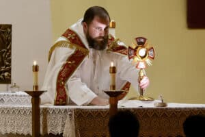It does start in our hearts — each of ours. It starts with that first yes, that first visit, those first moments in silence before the monstrance or the tabernacle, where the Lord begins his work on us. Whether the blind person searching for the Light, the thirsty one drinking at the Font, or the “nothing” who finds the All, we stay with the one who remains with us, the one who, as Bishop Cozzens so beautifully said, is “worthy of all the adoration we give to God alone.”