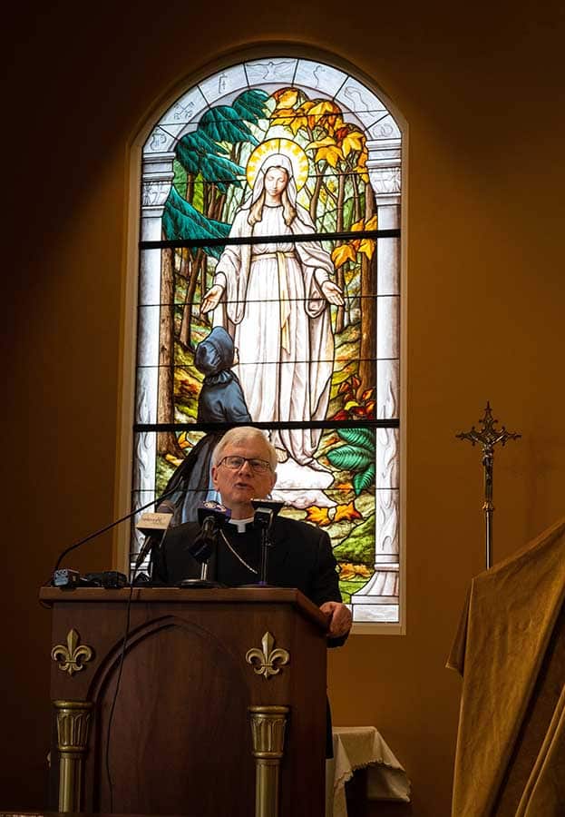 Wisconsin bishop invites faithful to share stories of Marian visionary Adele Brice January 18, 2026By Patricia Kasten OSV News Filed Under: Uncategorized GREEN BAY, Wis. (OSV News) — A formal inquiry of a 19th-century Belgian-American immigrant woman who witnessed three apparitions of the Blessed Virgin Mary has begun in the Diocese of Green Bay. On Dec. 28, Bishop David L. Ricken issued an edict seeking public input into the life of Adele Brice (Brise). The bishop is requesting stories from the faithful in a preliminary phase to a potential cause of canonization. Bishop David L. Ricken speaks of Green Bay, Wis., April 20, 2023, at the National Shrine of Our Lady of Champion in Champion. Behind him is a stained-glass image of the Blessed Mother appearing to Adele Brice (Brise). (OSV News photo/Sam Lucero) There are only 15 American saints and blesseds — but dozens of Americans declared “venerable” or “servants of God” are still awaiting elevation. Following these apparitions in October 1859, and obeying what she said Mary requested, Brice devoted her life to teaching the Catholic faith to local children. The site of her apparitions is now the National Shrine of Our Lady of Champion. On Jan. 4, in an official announcement on social media, Bishop Ricken invited people “to share any stories you have about Adele, personal experiences, experiences from family or friends, or ways her prayers and faithful example have touched your life.” This inquiry is the next step in a formal path that began in June 2024, when the U.S. Conference of Catholic Bishops authorized Bishop Ricken to open a sainthood cause for Brice. In November 2025, the Vatican formally allowed the cause to proceed. Until Jan. 30, public input about Brice, who was born in 1831 in Belgium and came to the U.S. as an immigrant with her parents and sisters, will be accepted by the diocese and the shrine. In 1855, the Brice family settled in Northeastern Wisconsin, near the town of Champion. The area attracted many Belgian immigrants and Father John Girotti, diocesan vicar general, noted the area is ripe with stories about Adele Brice..“The Belgians have not moved away,” Father Girotti said. “So the stories (about Brice) have not dissipated.” On Jan. 30, Father Girotti will become episcopal delegate of the sainthood cause. That will begin the formal work of the diocese in exploring Brice’s life. For now, Father Girotti said, the shrine is “the actor of the cause” in the sainthood process. “The ‘actor of the cause’ makes the request to Rome,” he explained. “The actor is the one who is asking: ‘Could she be a saint?’ … Once they ask that question, then the personnel get in action.” Those personnel will be in Rome as well as Green Bay. Father Girotti expects the diocesan phase to last a year and a half. He added that many stories have already been shared, from prayers answered, to healings and even things as everyday as naming daughters “Adele.” Brice, who was 24 when her family arrived, worked on her parents’ farm until 1859. In October of that year, she experienced apparitions of a woman dressed in white, wearing a yellow sash and crowned with stars. During the third apparition, this woman identified herself as “the Queen of Heaven who prays for the conversion of sinners.” She told Brice, “Gather the children in this wild country and teach them what they should know for salvation.” This apparition, now “Our Lady of Champion,” set the course for Brice’s life. She traveled the area, often on foot over many miles, teaching children the catechism and prayers, and preparing them for the sacraments. Asking for nothing in return, she often cleaned houses or did farm chores just to be allowed to teach the children. Eventually, her father, Lambert, built a small wood chapel on the site of the apparitions and people came to pray. This gathering for prayer continues today. The current brick chapel was built in 1942. In 2010, Bishop Ricken declared Brice’s visions “worthy of belief.” In 2016, the U.S. bishops made the site “a national shrine.” Today, this is the only church-approved Marian apparition in the United States. It is staffed by the Fathers of Mercy. Brice eventually founded a school there, aided by a group of laywomen. They cared for students, including some who stayed at what became “St. Mary’s Boarding Academy.” As Third Order Franciscans, they wore habit-like clothing, seen in photos of Brice, and disbanded after her death. In 1871, the Peshtigo Fire ravaged northeastern Wisconsin, killing as many as 2,400 people and burning 1.2 million acres. To escape the flames, many fled to “La Chapelle” (as the site was called) to pray through the night. The fire burned around the perimeter of the school and chapel, but everything within its bordering fence was spared. Today, this is recalled annually at “the Miracle of the Fire” held each Oct. 8. Many, including descendants of Belgian settlers, gather through the night to pray and share stories about Adele Brice and Mary. It is these stories which the diocese and the shrine seek: memories, prayers answered, lives changed and even potential miracles. “We’ve been watching this develop for 15 years now,” said Father Girotti, adding that, following a positive result of January’s public inquiry, it will become proper to refer to Brice as a “Servant of God.” After almost 37 years of catechetical ministry, Marie Adele Joseph Brice died on July 5, 1896. She lies buried beside the current chapel, in the boarding school’s cemetery. Her grave, near the apparition site, offers more insight. “One of the things we’ve noticed is that, over the years,” Father Girotti said, “there are more and more footprints by her grave. One of the things that we have used as a barometer is how trampled the grass is next to her grave. Or now, in the snowy season, how many footprints are in the snow. … This winte