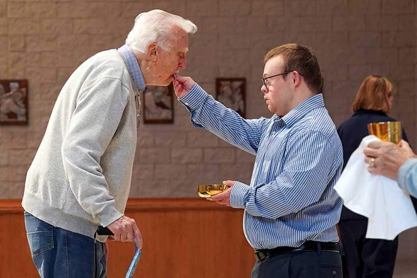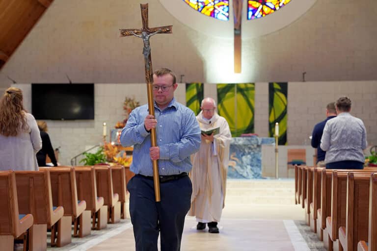 With reverence, contagious smile, volunteer with Down syndrome inspires Michigan parish October 24, 2025By Gabriella Patti OSV News Filed Under: Disabilities Ministry, News, Respect Life, World News NOVI, Mich. (OSV News) — Around the Novi area, many are already familiar with Robby Heil. With his contagious smile and warm personality, people might recognize 26-year-old Robby from his famous touchdown for the Novi Wildcats during a 2016 football game. Or, maybe they know Robby from his appearance in Keith Famie’s PBS documentary, “Chromosomally Enhanced: What’s Your Superpower?” Soon, others will recognize Robby’s Rudy-like story in a fictional film that is in production, inspired by his life. However, where Robby, who has Down syndrome, is perhaps most known and has the biggest impact is at St. James Parish, where he serves as an extraordinary minister of holy Communion three times a week on Mondays, Tuesdays and Wednesdays. “I’m working on Robby becoming a saint,” said Charles Heil, Robby’s dad and “Uber driver.” “I am pretty sure there are people who come to Wednesday night Mass and want to receive Communion from Robby. They meet him, and he’s in the news a lot, so many people know him. If you’re around Robby, you become a happy person.” Robby Heil, 26, a liturgical minister at St. James Parish in Novi, Mich., distributes Communion during Mass Sept. 8, 2025. (OSV News photo/Gabriella Patti, Detroit Catholic) Heil stays busy as Robby’s designated chauffeur — where Robby goes, Heil goes, and Robby’s schedule is packed. In addition to serving as a Eucharistic minister and carrying the cross in procession before and after Mass, Robby recently joined a video team at the parish and fills his time with baseball, basketball and power lifting. Robby and Heil also make time for trips to Disney World — Robby’s favorite character is Mickey Mouse — and recently returned from Rome, where they walked through all of the Holy Doors for the Jubilee Year of Hope. Almost every day, the pair visit the gravesite where Robby’s mom, Debbie, is buried, followed by a trip to Starbucks. Heil attributes all of Robby’s experiences and involvement with the church to his late wife, who passed away nearly five years ago after a battle with breast cancer, but not before she saw Robby score that famous touchdown. “We are here because my wife talked to our pastor, Father Ed Zaorski, and she’s why Robby scored the touchdown — she spoke with the coach,” Heil told Detroit Catholic, the news outlet of the Archdiocese of Detroit. Debbie was also instrumental in ensuring Robby received his first Communion 20 years ago, when, Heil explained, it was a challenge for churches to accommodate children with Down syndrome. In recent years, the church has become better at accommodating people with special needs, Father Zaorski said. Before he was a priest, Father Zaorski said he worked as the director of the Archdiocese of Detroit’s office ministering to those with disabilities, and he’s seen the changes over the years. “This was way back when folks were still institutionalized. People didn’t fully understand persons with challenges, and we knew we had to do more,” Father Zaorski said. “I think if anything, (Robby) is a real example not only for people with Down syndrome, but for all young people. If Robby could do it, everyone should do it.” Robby and Father Zaorski have developed a friendship and mutual respect over the years.“I love him; he’s doing well every day,” Robby said. Robby once dressed up as Father Zaorski for Halloween — complete with a bald cap. “Robby spars with me on occasion, but it’s with love,” Father Zaorski laughed. “Most people in the parish know Robby probably more than they know me,” he added, jokingly. Father Zaorski admires Robby’s reverence for the Eucharist and says it sets an example for the rest of his parishioners at St. James. “Every time he receives or distributes the Eucharist, there’s such reverence — it is a wonderful sign and symbol of how we should all truly appreciate the Eucharist,” the priest said. “When Robby’s giving out Communion, people really approach with reverence. You can tell with his reverence and the way he distributes, he knows what the Eucharist is, and I think that’s a testimony to his mom and even his dad really forming him in the faith. “He’s been an inspiration for people with Down syndrome and all the young folks,” Father Zaorski added. Gabriella Patti is a staff reporter for Detroit Catholic, the online news outlet of the Archdiocese of Detroit. This story was originally published by Detroit Catholic and distributed through a partnership with OSV News. Read More Respect Life Generating life requires having hope in life’s meaning, pope said 175 lawmakers demand ‘robust’ investigation on risks of abortion pill Vatican says cause can move forward for Massachusetts pro-life activist, wife, mother Mercy Medical Center program combats preterm deliveries Bishops’ new pro-life chair: Project Rachel ministries ‘key to our pro-life efforts’ Catholics for Choice displays controversial billboard in Baltimore Copyright © 2025 OSV News Print