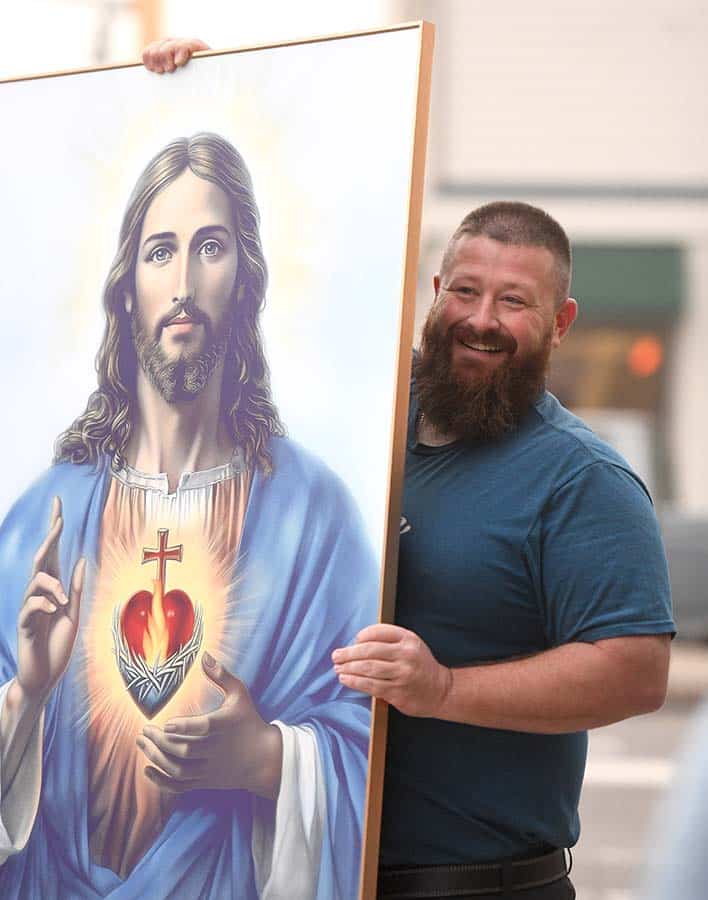With street corner ministry, Minnesota man says he’s doing what Lord has asked of him October 17, 2025By Dianne Towalski The Central Minnesota Catholic Filed Under: Evangelization, News, World News LITTLE FALLS, Minn. (OSV News) — Standing on a streetcorner greeting passersby is not something Will Threlkeld has ever done before. But every Monday morning in downtown Little Falls, that’s exactly where you can find him, greeting people and showing them the face of Jesus. He’s just doing what the Lord has asked of him, he said. “I asked the Holy Spirit to come into my soul, I surrendered myself to Jesus and I asked him to use me,” Threlkeld told The Central Minnesota Catholic, magazine of the Diocese of St. Cloud. “The Holy Spirit said to take the picture off my wall at home and show his children his face. So, I did what he asked.” Will Threlkeld greets passersby with a wave and a smile on a street corner in downtown Little Falls, Minn., Sept. 22, 2025. (OSV News photo/Dianne Towalski, The Central Minnesota Catholic) He estimates that each Monday nearly 4,000 people passing through the intersection of Broadway Avenue and First Street SE, also known as Bank Square, have seen him holding up a 3-foot-by-5-foot print of the Sacred Heart of Jesus with a small group of friends praying the rosary behind him. Before he started, Threlkeld reached out to Father Patrick Hoeft, parochial vicar of Little Falls’ Haven of Mercy Catholic Community, to tell him he felt called to this street-corner ministry. He asked Father Hoeft to join him the next morning to pray the rosary. “I was moved by the immensely positive response to this and the joy that it brought to people,” Father Hoeft. “It’s such a simple way to bring Jesus to the public mind, and it’s amazing how the Lord has been at work through this.” Standing on the corner next to Will was Isaac Eggerth, a senior at Little Falls High School, who held a sign that said, “You are Loved, You are Enough.” “Will texted me one morning and said, ‘Come pray with me! Monday morning!'” Eggerth said. “I thought that maybe people need a reminder that God will always be there for them and that we should try and spread his word as much as we can,” he said. On a recent foggy Monday morning, people from all walks of life drove by — families in SUVs, construction workers in pickup trucks, cement mixers, entire buses of kids on the way to school, the Little Falls Police and Morrison County Sheriff, even a pizza delivery guy — all waving and honking. “As long as this is what the Holy Spirit is calling me to do, I’ll do it,” Threlkeld said. “It made me feel humble as I walked up (to the corner) the first time at six in the morning. I laughed, I smiled, I cried as the children of God drove by and I could see their faces light up when they saw his picture. It was beautiful.” Julie Laflamme, who is a close friend of Will and his wife, Tiffany, joined them on the corner that morning to pray the rosary. “Anyone who knows Will, knows he loves Jesus,” she said. “He lives his life in such a way that those who know him but do not know God, will come to know God because they know Will.” He wants to bring as many people to Jesus as possible, she added, and he wants people to see Jesus, not him. “We want to focus people’s attention on Jesus,” Father Hoeft said. “Just like when Peter walked on the water with Jesus, it was when he took his eyes off Jesus and focused on the storm that he began to sink. There are so many storms raging in our culture and in people’s lives, and it can become easy to be consumed with focusing on the storm. Jesus wants us to keep our eyes on him. With Jesus we can walk on the water even if the storm continues to rage.” Throughout the morning, people came to the corner to join the group or to just see what was going on, including Franciscan Sister Cordy Korkowski, who came upon them during her daily walk. “I was inspired by the fact that they would boldly profess their faith on the streetcorner here in Little Falls,” she said. “As I continued my walk I could hear the car horns honking … it was a message that carried throughout the morning rush-hour.” “We want to help others to encounter Jesus and the joy of Jesus,” Laflamme said. “Why would we not want to share the most beautiful gift we’ve been given, Jesus Christ?” Threlkeld just wants people to know that Jesus loves them and is waiting for them to ask him into their hearts, he said. “My hope from all of this is to bring people to the Catholic Church, Jesus’s church, so that they too, can receive the sacraments he has left us, so we can see him in heaven one day.” Dianne Towalski is social media manager at The Central Minnesota Catholic, magazine of the Diocese of St. Cloud. This story was originally published by The Central Minnesota Catholic and distributed through a partnership with OSV News. Read More Evangelization AI offers the church an ‘evangelical opportunity,’ scholar tells U.S. bishops New director of Office of Life, Justice and Peace hopes to promote dignity of all Pope Leo XIV urges Catholic technologists to spread the Gospel with AI Radio Interview: Catholic Extension Society provides mission support in dioceses across country Father Mike Schmitz invites listeners to enter ‘The Imitation of Christ’ with new podcast ‘Hello! I’m a Catholic Priest!’ How one coffee shop ministry attracts student seekers Copyright © 2025 OSV News Print