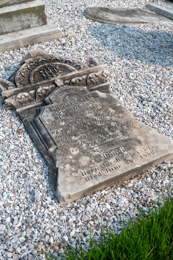 With support of loving community, Baltimore cemetery is revitalized June 28, 2025By Susan McInerney Special to the Catholic Review Filed Under: Feature, Local News, News In recent decades, St. Vincent Cemetery in Baltimore was often synonymous with neglect, overgrowth and desecration. No more. The Friends of St. Vincent Cemetery (FOSVC) and others gathered June 14 for the blessing of the restored cemetery and new memorial gardens. About 80 people showed up for the ceremony, according to Colleen McCahill, pastoral associate at St. Vincent de Paul Church in Baltimore. They were greeted with the green vibrancy of new vegetation planted in April. A central grove of markers is situated on a scenic overlook at the historic St. Vincent de Paul cemetery, which spans 5.3 acres and is surrounded by the Clifton Park Golf Course in Baltimore. (Kevin J. Parks/CR Staff) “All the grass, trees and plantings were lush and green, making a lovely color backdrop to the whites and grays of the headstones and memorial grove beds,” she said. “I was in awe!” added Stephanie Town, president of FOSVC and a woman whom many called the driving force behind the cemetery’s revival. “I felt like it was such an honor to be part of that group of people.” Father Raymond Chase, outgoing pastor of St. Vincent de Paul church, said there was a range of emotions during the ceremony, including reverence for what they were doing and sadness for how the cemetery had fallen into disrepair in the 1960s and 1970s. But the dominant theme was upbeat. “There was pride in the people and work that brought us to this moment,” he said. “And joy at witnessing the children place ‘Forever Flowers’ at the headstones.” The readings included Psalm 23 and a section of St. Paul’s first letter to the Corinthians, read by Town: “Death is swallowed up in victory. Where, O death, is your victory? Where, O death, is your sting?” The cemetery is the final resting place for more than 4,000 people from St. Vincent de Paul Parish as well as the parishes of St. Leo the Great and St. John the Evangelist, McCahill said. In addition, bodies from St. James Cemetery were moved to St Vincent Cemetery in the mid-19th century. Cleaning it up and creating the new memorial gardens was a long haul, according to Town, who had been raised as a member of Corpus Christi Parish in Bolton Hill as a child. The cemetery had suffered from vandalism as far back as the 1950s, with headstones broken and funerary monuments toppled. “It was a mess for everybody,” she said. The memorial marker for Michael Welch, who passed away in 1891, and his son John, who died in 1886 at the age of 12, is located in the main grove atop the hillside of St. Vincent de Paul Church cemetery. (Kevin J. Parks/CR Staff) But God bless the Internet. With increased interest in genealogy and the advent of Ancestry.com, more and more people became interested in their forebears and consequently the cemetery. Town’s own story began with her mother’s death, which prompted her to delve into her own family tree. She met people through her cousin at the Maryland Historical Society. He put her in touch with others, and the whole enterprise grew. “It was like a chain email,” Town explained. “Someone set up a listserv, and the group grew to over 100 people.” By 2010, people had become frustrated with the state of the cemetery, and in 2012 a group of descendants formed the FOSVC. The group relied on hundreds of volunteers to clean up the grounds, including students, Civic Works (a part of AmeriCorps) and Blue Water Baltimore, Town said. Town said they set up a 501(c)3 nonprofit organization, which made donations tax deductible, and raised more than $30,000. The group also applied for grants, because it needed money for landscaping as well as for hand tools and water for volunteers. Once the grounds were cleared, FOSVC could move ahead with landscaping and design. Enter Ray Heil, a landscape architect and member of St. Vincent de Paul Parish. He was able to come up with a plan that met the constraints of the land and the budget and incorporated use of the scattered headstone pieces. “When he presented his design plan at a meeting, people cried,” Town said. Most of the people buried at the cemetery were immigrants or first- or second-generation Americans. Irish, English and Italians are most represented in the interment records. “We are also aware of several African Americans interred there, including at least one who had been enslaved,” she said. While Town grew up in Baltimore, she has lived in Pennsylvania since 1982. It was her father, who worked at Sparrows Point in the 1940s, who regularly attended the 2 a.m. Mass at St. Vincent’s. “It was called the printers’ Mass,” she said. “It was for shift workers.” Read More Local News Saved by an angel? Baltimore Catholics recall life‑changing moments No, Grandma is not an angel New Emmitsburg school chapel honors son who overcame cancer Loyola University Maryland receives $10 million gift Archbishop Curley’s 1975 soccer squad defied the odds – and Cold War barriers Radio Interview: Discovering Our Lady’s Center Copyright © 2025 Catholic Review Media Print